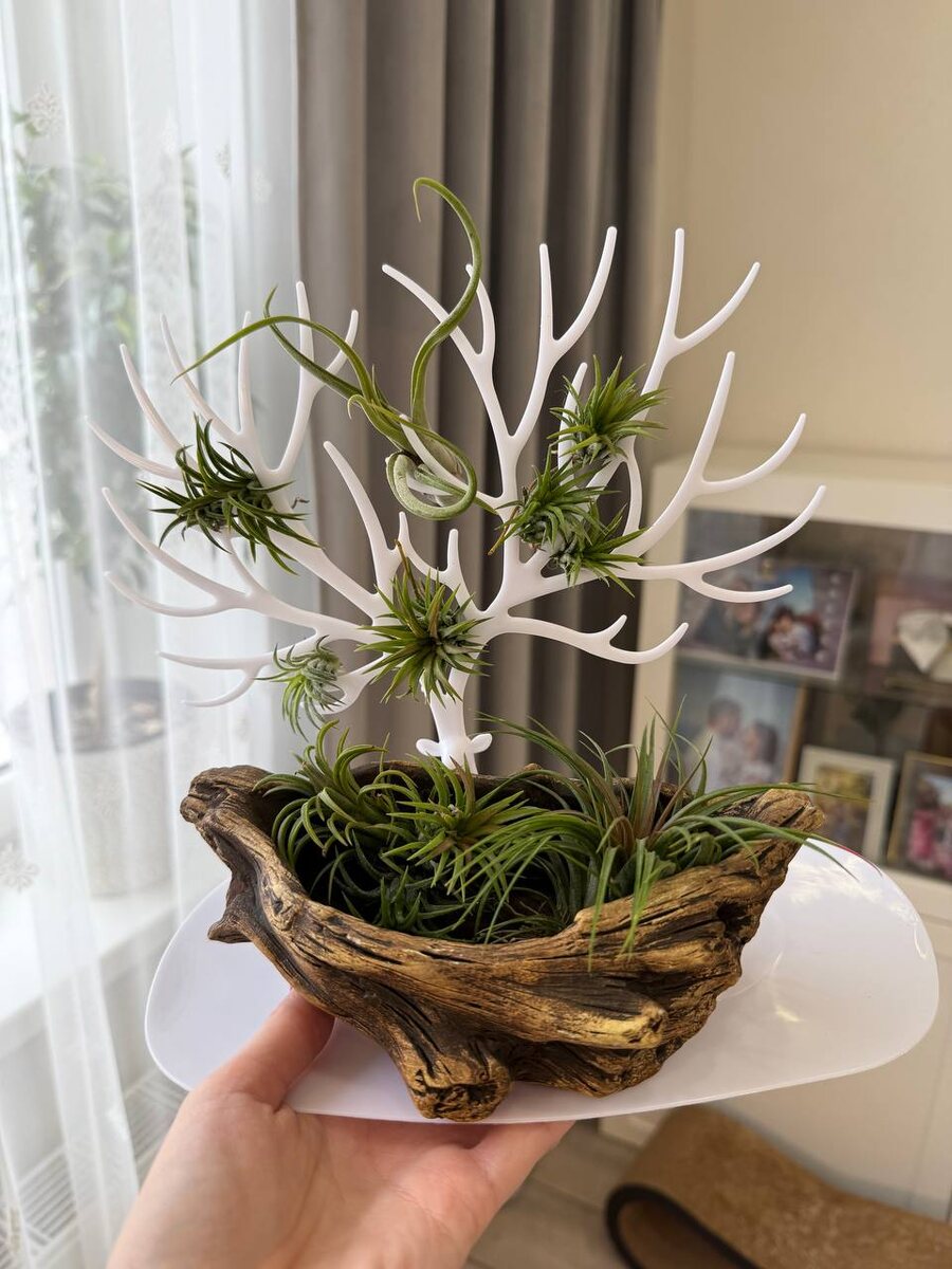 Раздербанила новую Тилландсию 👀Точнее она сама распалась окончательно после купания 🛁 Решила закрепить всех на подставке для украшений