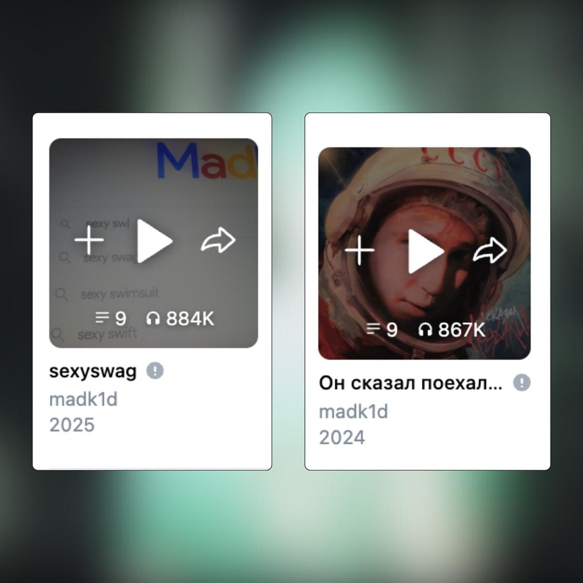 ⚡ Интересный факт: новый альбом madk1d меньше чем за 2 недели перегнал прошлогодний альбом по прослушиваниям на официальном плейлисте в VK