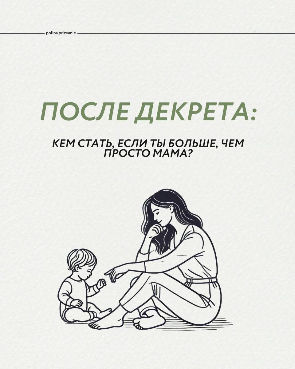 После декрета: не просто выйти на работу, а вернуться к себе А вы знали, что, наверное, 40% моих клиентов — это женщины в декрете? И нет, не потому что им нечем заняться и они вдруг решили «поиграть в самопознание»🥺 Дело совсем в другом. В том невероятно мощном переходе, который происходит после рождения ребёнка. Когда меняются роли, привычная жизнь рассыпается на кусочки, а на горизонте возникает что-то новое — пока ещё неясное. И в какой-то момент приходит тишина, в которой звучит вопрос: 👂А кто я теперь, если не только мама? 😍Но вы уже не хотите просто найти работу. Чаще всего вы хотите понять: а кто вы теперь? Что вам по-настоящему интересно, кроме распорядка, игрушек и детских кружков? В чём теперь ваша ценность? Где ваша сила? Что действительно важно — для вас, не для всех? Возможно появляется внутренний зов — я хочу делать что-то значимо и быть примером реализованной женщины для своего ребенка. Но что именно? И как понять, с чего начать? Это не просто вопрос о карьере.