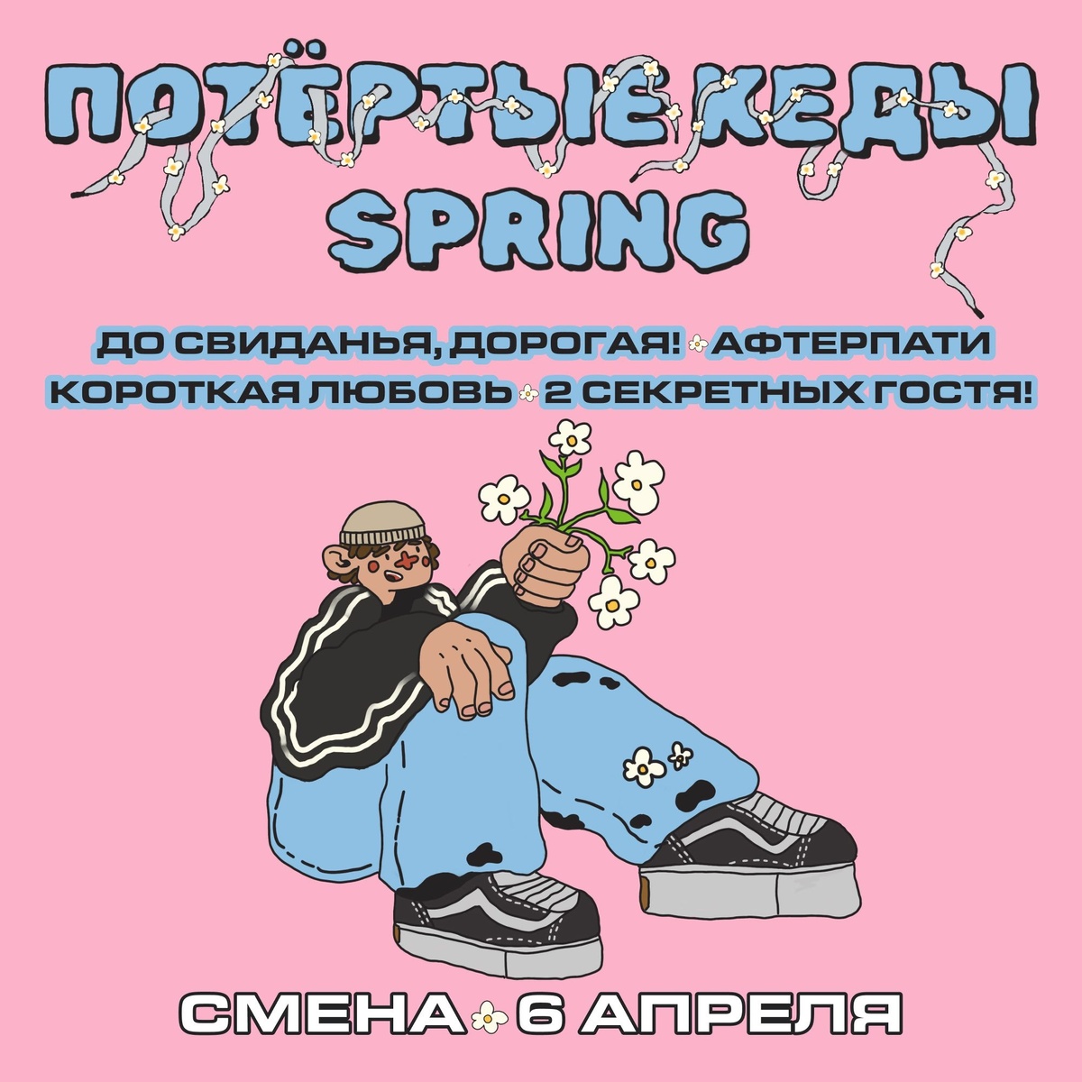 Мск 2025.04.06 До свиданья, дорогая! / Афтерпати / Короткая любовь † Смена 17:00 от 550р † vk.com/potertiekedi_moskva Фестиваль «Потёртые кеды» отмечает день рождения! Надевай свою самую потрёпанную пару и беги давиться в толпе под панк, шугейз и эмо в клубе Смена! #202504s@intothemsk #emo #shoegaze #punk
