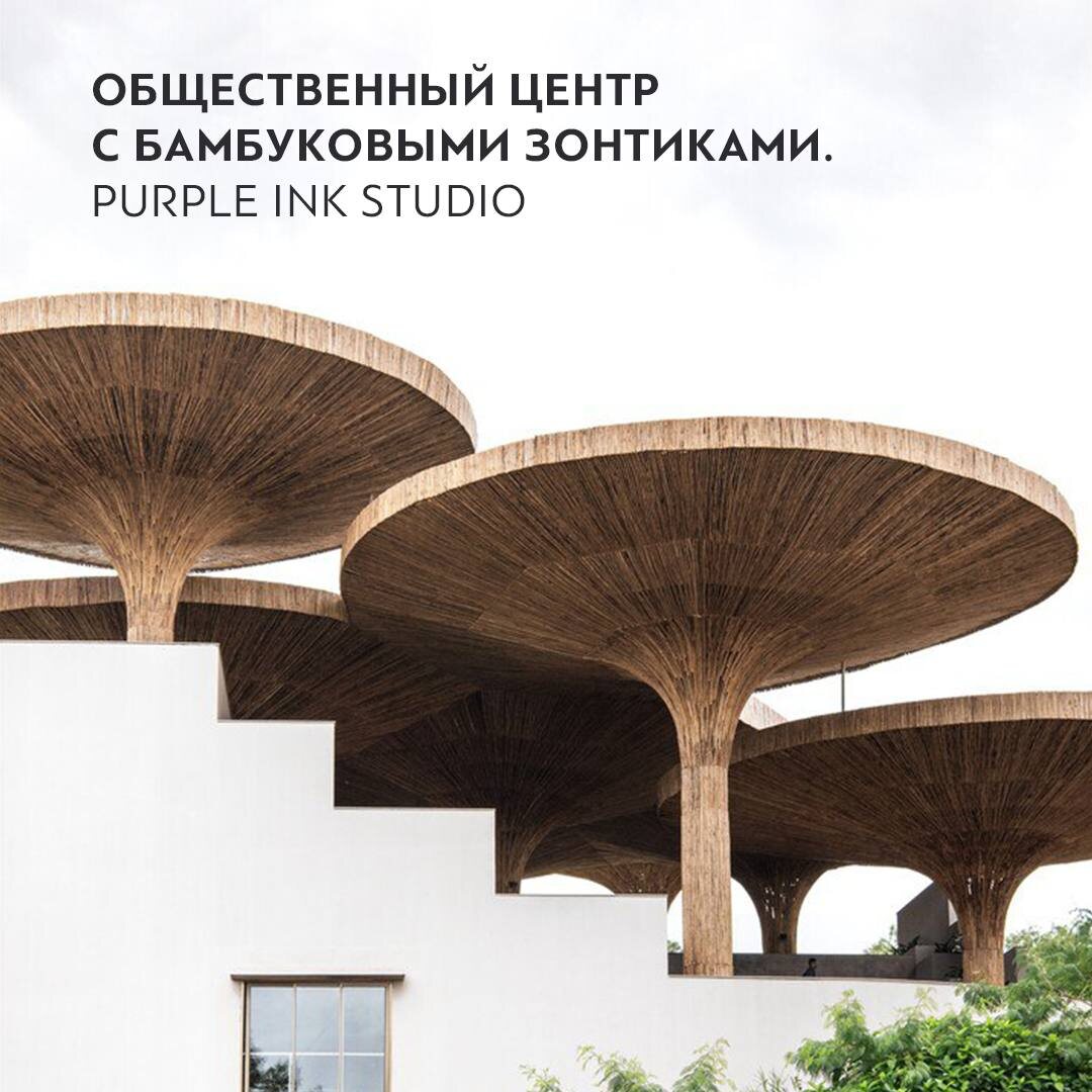 ARCHITECTOR ВДОХНОВЛЯЕТСЯ🔗 Общественный центр с бамбуковыми зонтиками. Purple Ink Studio☂️ Архитекторы Purple Ink Studio спроектировали здание в Манипале с необычным архитектурным решением - крышей с бамбуковыми зонтиками. Ведущий архитектор Нишита Бхатия отмечает, что проект представляет собой современную интерпретацию привычной школьной постройки. Но главная особенность здания — это 11 навесов-зонтов, вдохновленных традиционными индийскими «чатри» — небольшими беседками на берегах Ганга. Бамбуковые навесы, напоминающие раскидистые деревья, укрывают комплекс из двух зданий, включающий учебные классы, офисы, мастерские и кафе. В центре расположен амфитеатр, призванный восполнить нехватку общественных пространств в городе. Каждый купол диаметром 12-14 метров покрыт металлическими листами, обеспечивающими сбор дождевой воды. Собранная вода направляется в резервуары внутри колонн и далее в близлежащий ручей. Стальной каркас зонта укреплен фермами и обшит вручную бамбуком, добытым на м