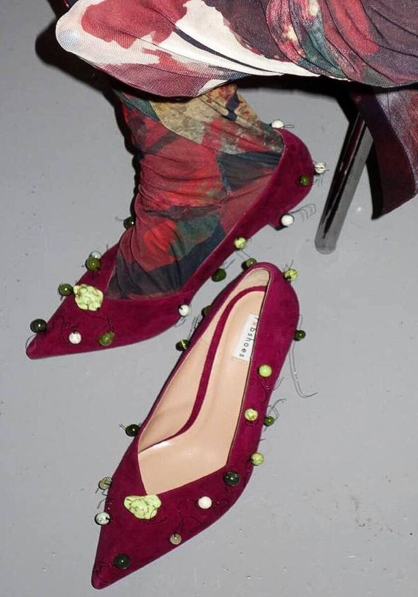 В коллаборации RXBSHOES и GAPANOVICH появилась пара, о которой никогда не забудешь — лодочки «Каменные горошины». Как звучат, так и выглядят: бордовая итальянская замша, украшенная бусинами из натуральных камней — каждая будто выкатилась с таинственного северного плато. Заострённый нос, устойчивый каблук 6 см и ощущение, что на ногах целое произведение искусства. Заказать можно только по предоплате, ждать — 15 рабочих дней, но, поверьте, оно того стоит. #РазгонМода_ВещьДня