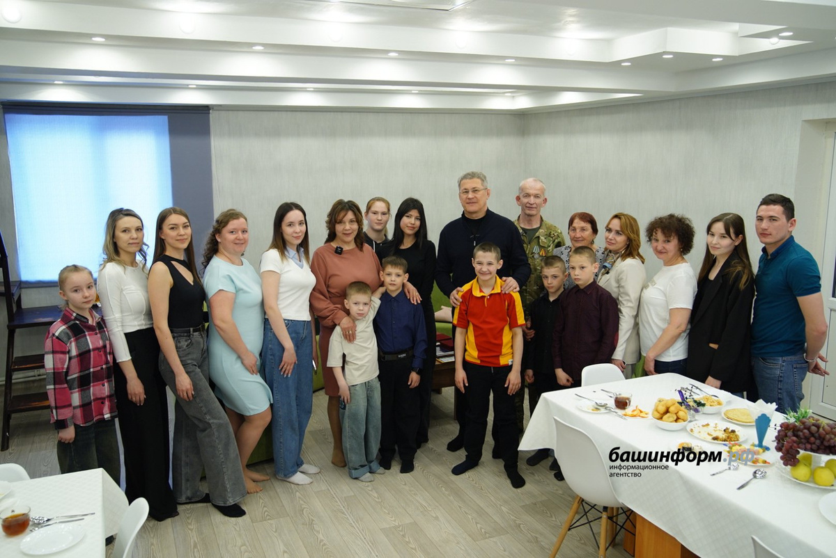Во время рабочей поездки в Благовещенск Глава Башкортостана Радий Хабиров посетил многодетную семью Валиевых – Вервельских, воспитывающую 30 детей. Среди них трое родных, двое усыновленных и 25 приемных. По словам Ирины Вервельской, 13 старших детей уже создали свои семьи и живут отдельно, один служит в армии, пятеро – школьники, а девять обучаются в вузах и колледжах. Также в семье есть родственники, участвующие в специальной военной операции: два сына и три зятя. Первого приемного ребенка супруги взяли в 2004 году. Глава семьи, Вахид Валиев, заключил контракт и отправился на СВО в сентябре прошлого года, а сейчас находится в отпуске. В ходе встречи Радий Хабиров вручил ему медаль генерала Шаймуратова. Валиев отметил, что решение участвовать в операции принял осознанно, а его семья полностью его поддержала. Перед отъездом он собрал детей и распределил между старшими домашние обязанности. За чаепитием Ирина Вервельская поделилась историей того, как семья построила дома в одном районе Б