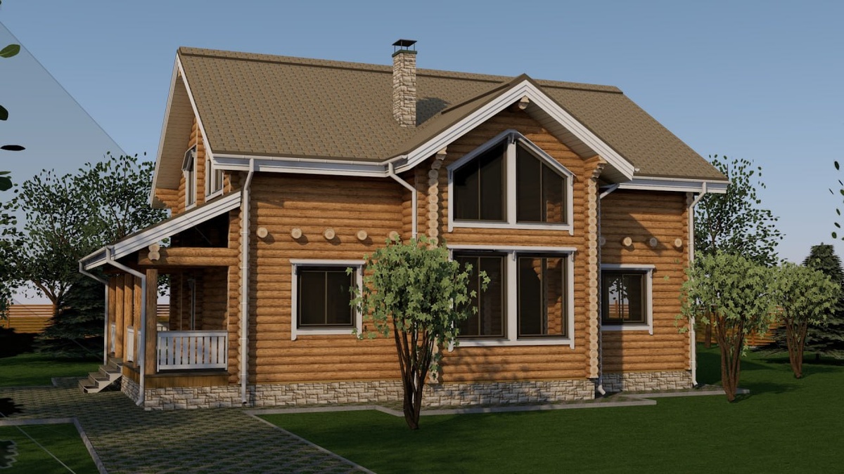 Интересный проект просторного дома с мансардным этажом из профилированного бревна диаметром 240 мм. добавлен на наш сайт https://rusdrevdom.ru/d187