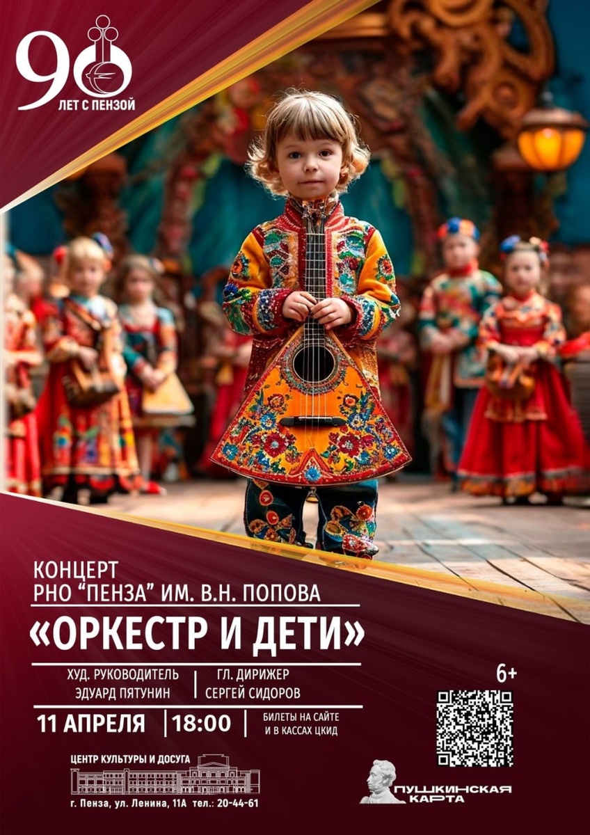 📌 11 апреля ✅ 18:00 🏛 Большой зал Центра культуры и досуга Русский народный оркестр "Пенза" им. В.Н. Попова приглашает на особенный вечер музыки «Оркестр и дети». 🎶 Программа соткана из удивительного сочетания русских народных песен и произведений выдающихся композиторов отечественной и мировой музыкальной культуры, которую исполнит оркестр вместе с учащимися детских музыкальных школ и детских школ искусств города Пензы, города Заречного, а также Камешкирского района. Вы услышите: концерт для фортепиано с оркестром Э. Грига, концерт для двух скрипок А. Вивальди, «Танец пастушков» из балета «Щелкунчик» П. Чайковского (трио флейтистов), произведения А. Цыганкова (домра), пьеса «Любимая мелодия» В. Бибергана (фортепиано), обработки народных песен для баяна, гитары, ансамбля ложкарей, а так же песни из репертуара прославленных Л. Руслановой и Л. Зыкиной (народный вокал). 6+ ❗️ Онлайн билеты: https://iframeab-pre7560.intickets.ru/seance/51876360/ 📞 20 44 61