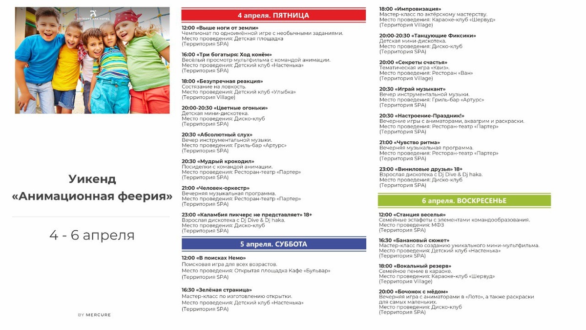 Программа анимационных мероприятий на уикенд с 4 по 6 апреля