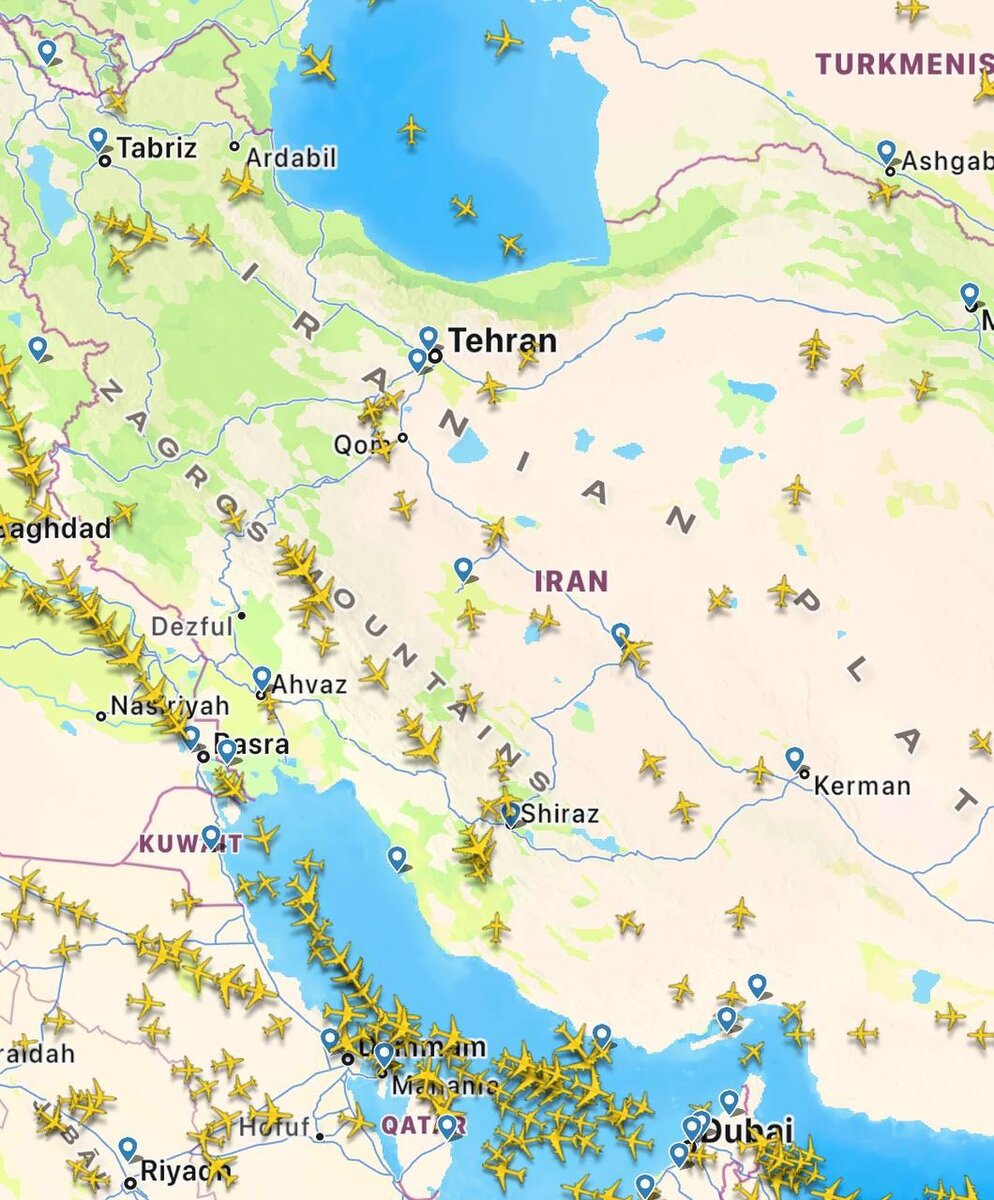 UPD: Мониторинговые каналы опровергают сообщения о якобы закрытии Ираном своего воздушного пространства, новость запустил украинский ноунейм в соцсетях.