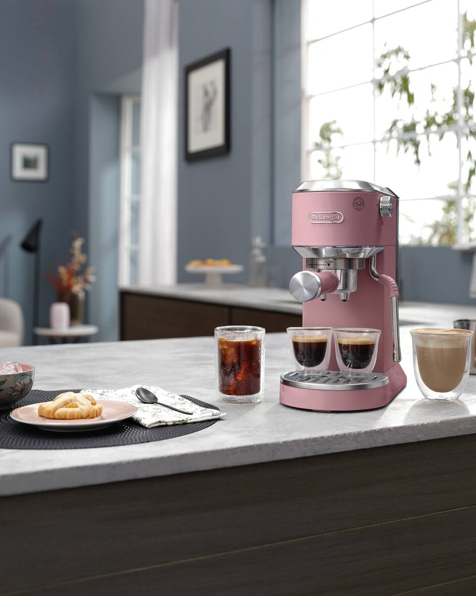 Спешим анонсировать нашу новинку - Dedica Duo в нежно-розовом цвете. Она компактна, функциональна и настолько стильно смотрится в интерьере, что положительные эмоции каждое утро - гарантированы. В комплекте: кувшин для молока, тэмпер, фильтр, холдер, мерная ложечка. Из предустановленных напитков: эспрессо, двойной эспрессо и самое главное - колд брю. С помощью удобного сопло вы можете готовить любые молочные напитки, даже лавандовый раф💕