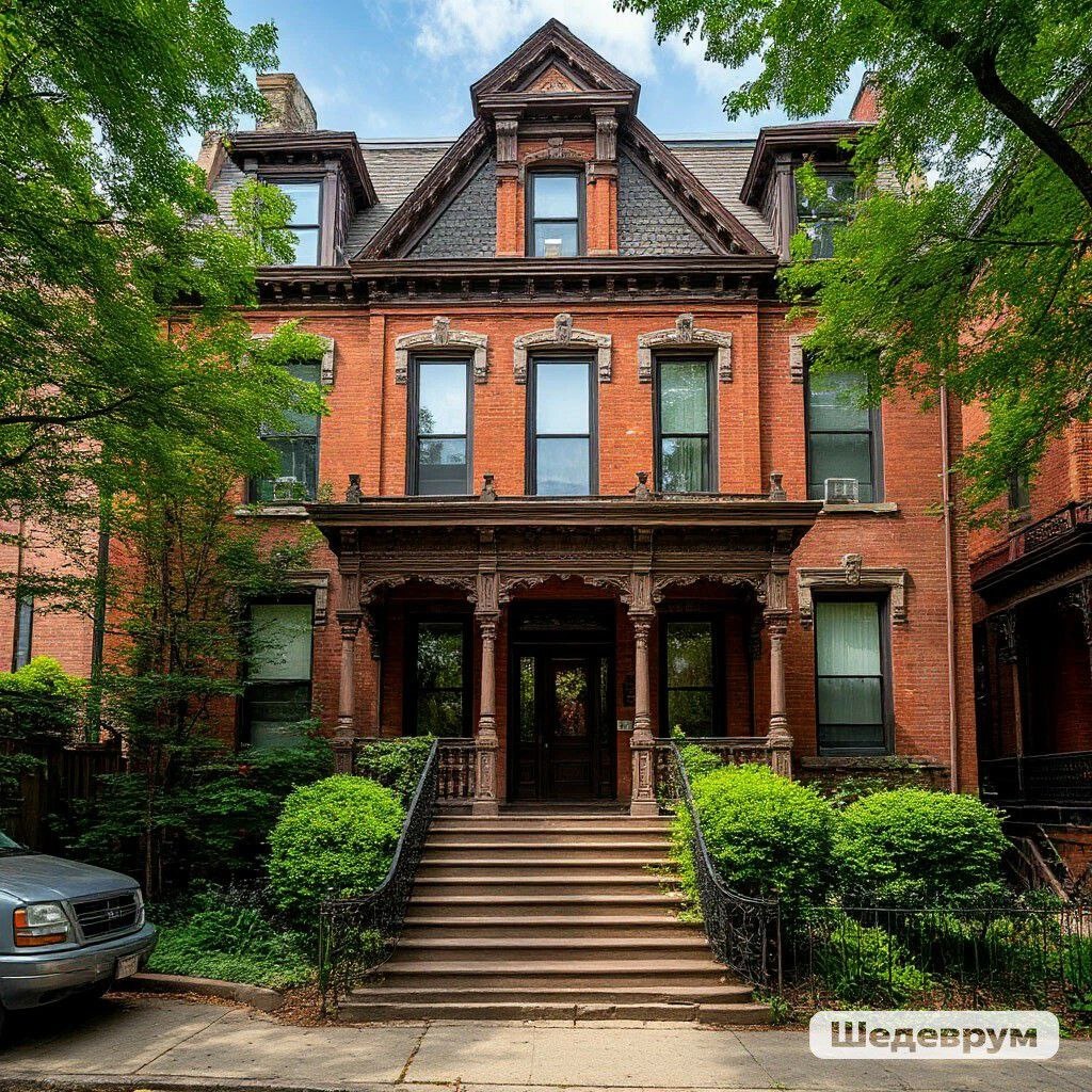 Трехэтажный кирпичный таунхаус с огромным крыльцом,резные поручни, ухоженный маленький садик, и никаких шастающих мигрантов