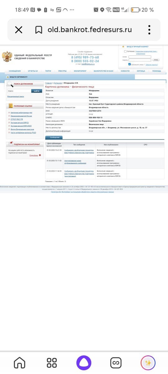 Сергей Сергеевич, спасибо Вам и Виктории Анатольевне за помощь при оформлении бумаг для процедуры банкротства
