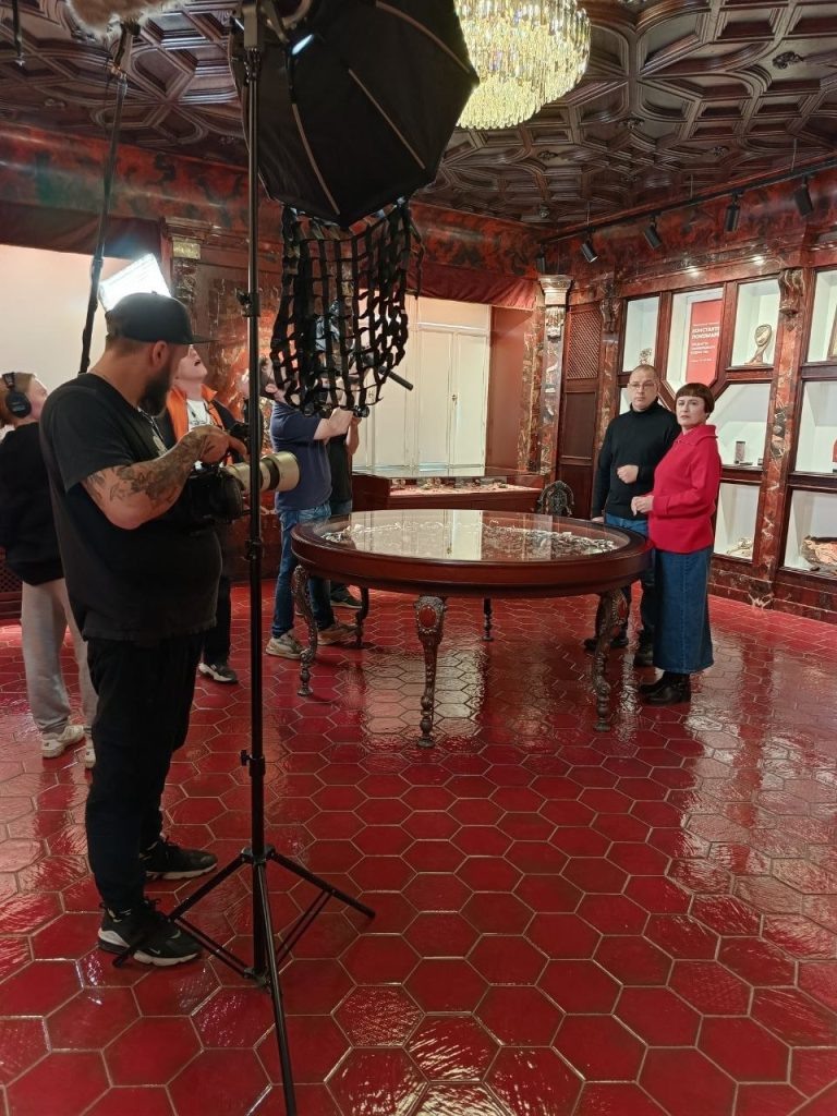 Команда телешоу «Формула еды» телеканала «Россия 1» приехала в Оренбург и познакомилась с достоянием Оренбуржья — легендарной орской яшмой. Ведущие проекта, доктор медицинских наук Сергей Агапкин и актриса Сесиль Плеже, сняли туристическую рубрику нового выпуска в яшмовой комнате, расположенной в центре «Эрмитаж-Евразия». Сотрудники музея ИЗО рассказали гостям историю создания панно в технике «русская мозаика». Съёмочная группа «Формулы еды» узнала, что на уникальный экспонат ушли больше года и 23 тонны горной породы. Журналистам вручили памятный подарок — небольшую россыпь яшмы. Отметим, что телешоу «Формула еды» выходит в эфир уже пять лет. Команда рассказывает зрителям о вкусной и полезной пище, показывает процесс производства продуктов в разных регионах России. В Оренбургской области журналисты посетили птицефабрику и предприятие по переработке мяса. Когда выпуск выйдет в эфир, пока не известно. Напомним, яшмовая комната появилась в 2024 году в культурном центре «Эрмитаж-Евразия».