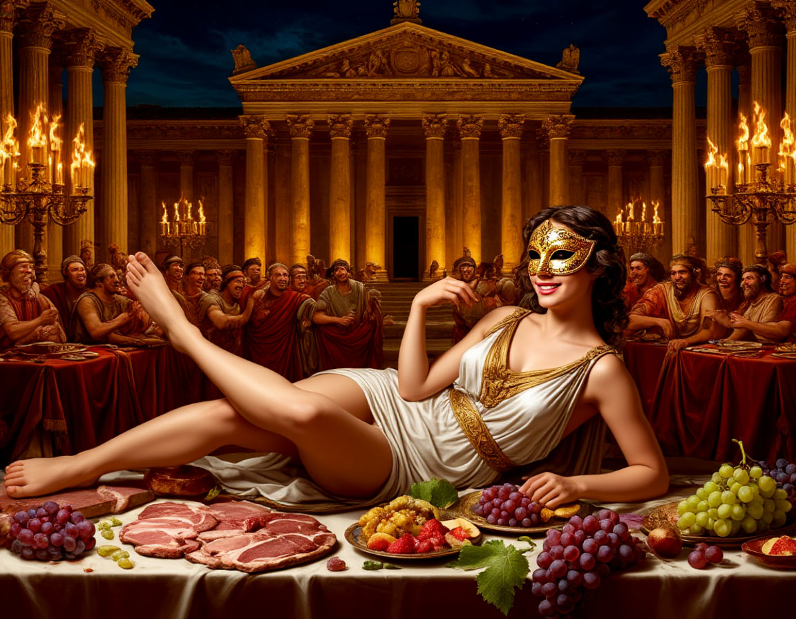 Достаточно представить такую картину: вы, римский достопочтенный патриций, прибываете на честной пир - в компании жены-матроны.