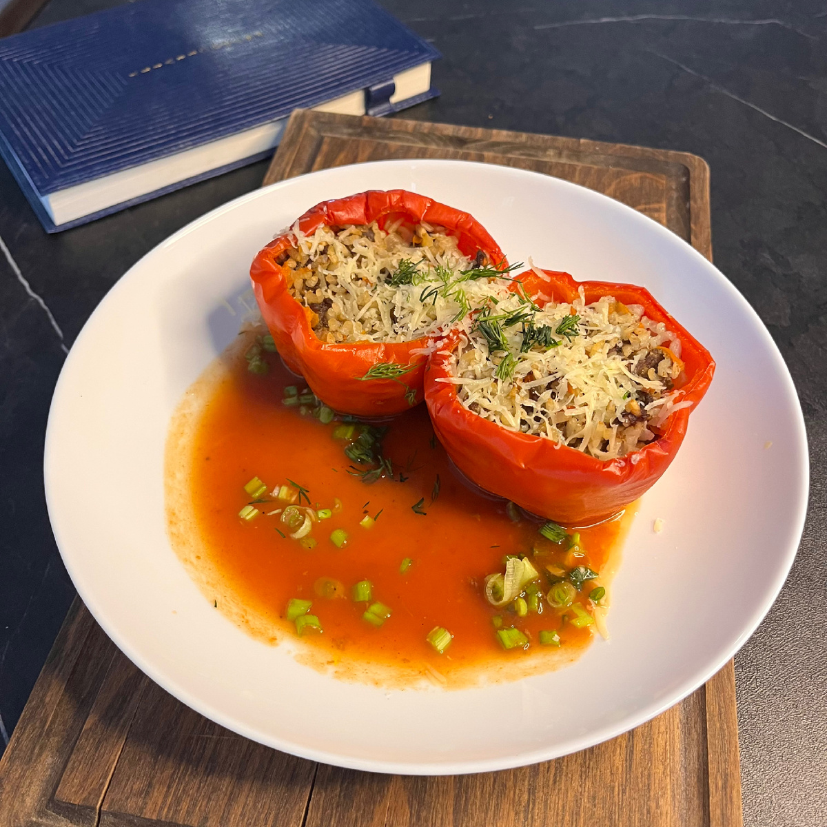 Привет, друзья! Сегодня делюсь своим любимым рецептом — фаршированные перцы в духовке. Обожаю их! Разноцветные перцы красивы, но я беру красные — они сладкие и сочные. Часть перцев делаю с сырым рисом для себя, а часть — без риса для домочадцев, они его не любят. А еще я добавляю сыр в конце — так вкуснее! - 6-8 красных перцев - 500 г мясного фарша - 100 г сырого риса (лучше круглого) - 1 луковица (мелко нарезать) - 2-3 зубчика чеснока (измельчить) - Соль, перец — по вкусу - 300-400 мл томатного соуса или воды - Тертый сыр (по вкусу) 1. Подготовка перцев Срежьте верхушки, уберите семена. Промойте и готово. 2. Начинка Для себя: смешайте фарш, сырой рис, лук, чеснок, соль и перец. Для домочадцев: фарш с луком, чесноком и специями, без риса. 3. Наполнение С рисом — заполняйте не до верха, он разбухнет. Без риса — можно полностью. 4. Соус Налейте в форму томатный соус или воду — до половины перцев. Это нужно, чтобы рис сварился. 5. Запекание Накройте фольгой и пеките при 180°C