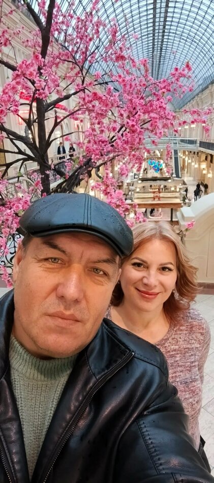 Здравствуйте, друзья! Как вы поднимаете своё настроение? Чем наполняетесь в эти прохладные, дождливые дни? Мы с мужем сегодня выбрались в центр города. И несмотря на нескончаемый, скучный дождь, нескучно провели время, наполнившись весенней свежестью и красотой центральной, величественной Москвы. Вышли мы на Лубянке, прошли по Никольской улице и по ходу нашей прогулки, как водится, заглянули в знаменитый московский ГУМ. А там такая красота! Центральный универмаг оформлен в весеннем стиле. Сфотографировались у цветущей красивой яблоньки. И ярко розовой вишни. Пройдёт немного времени и эти деревья распустятся живыми цветами улиц, ну, а пока что они радуют глаз в рекреациях больших магазинов. ГУМ и внешне и внутренне очень интересен, красив, со стеклянной, арочной крышей и светлыми, обильно декорированными стенами. Построено это историческое здание в 19 веке. Торговый город в городе, правда? Тут можно "потеряться" и "пропасть" на весь день, посетив не только магазины, но и фонтанную площа