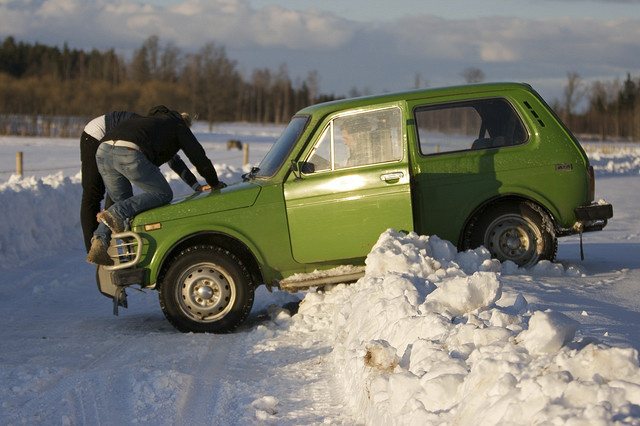 - Э, Сизиф, ты что удумал? – охолони́л его Шурик, прикрывая рот воротником – Это ж «Нива»! Тут же все мосты замёрзли, раздатки, колёса намертво в пол вросли. Ты её вдесятером с места не сдвинешь, Геракл херов! На улице сорокет! Я тебе в этом точно помогать не буду.