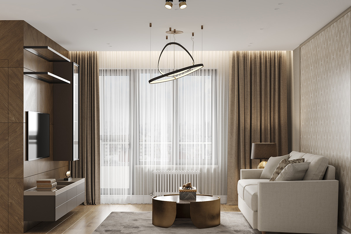 - Уделите особое внимание освещению, проверьте все сценарии. Важно, чтобы цветовая гамма выглядела именно так, как задумано, во всех вариантах – от дневного света до использования светильников в различных вариациях в разное время суток.