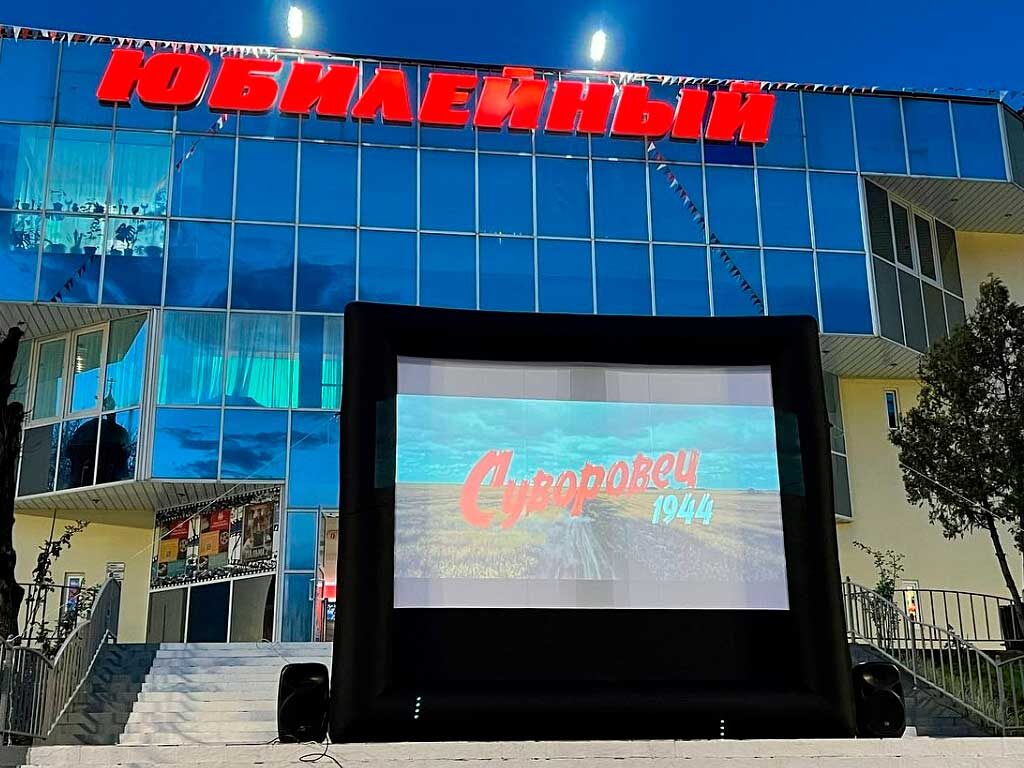 Серия киносеансов стартовала на площади перед ГДК «Юбилейный» в микрорайоне «Донской», где зрителям представили картину «Суворовец 1944».