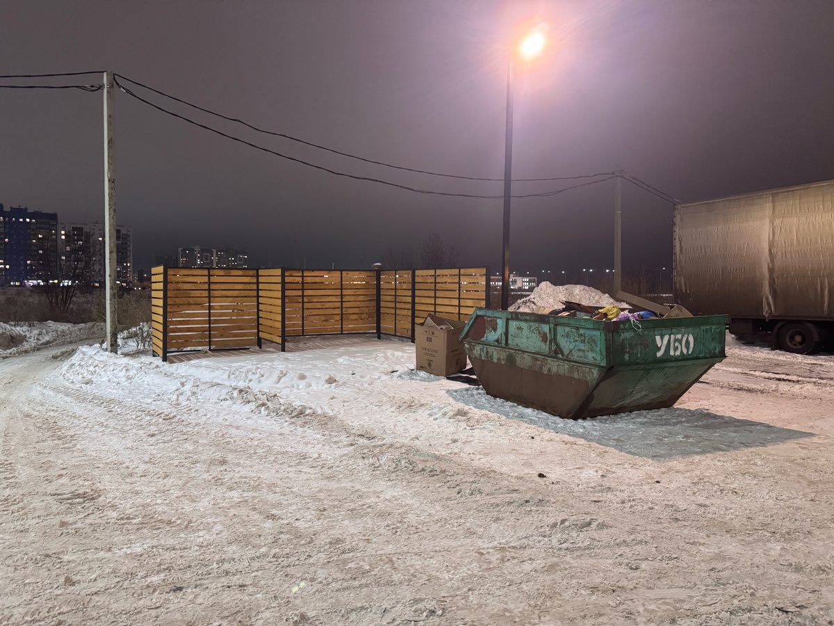 Если на контейнерной площадке есть специальный отсек для КГМ, его нужно оставлять там. Если такого отсека нет, мусор можно разместить на территории обычной площадки.