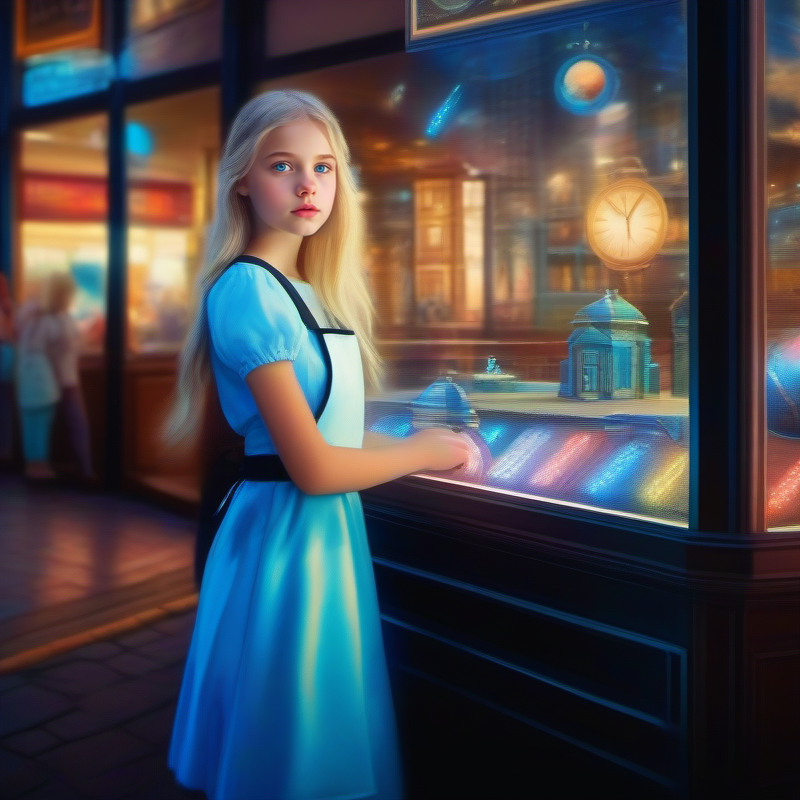 Алиса всегда мечтала о приключениях, но никогда не думала, что они начнутся в обычный вторник. Она шла по улице, когда увидела яркую вывеску: “Измени себя! Новая ты каждые 30 минут!” Заинтригованная, она вошла в магазин. Внутри было множество зеркал и странных устройств. Продавщица с улыбкой подошла к ней: — Хочешь попробовать нашу новинку? Это революция в мире красоты! Алиса колебалась, но любопытство взяло верх. Она согласилась и через несколько минут уже держала в руках небольшой прибор, похожий на часы. — Просто надень его и нажми кнопку, когда захочешь измениться, — объяснила продавщица. Девочка вышла на улицу, чувствуя волнение и трепет. Она нажала кнопку, и вдруг её тело начало меняться. Волосы стали длиннее и темнее, глаза изменили цвет, а кожа приобрела загар. Каждые полчаса она нажимала кнопку, становясь то высокой блондинкой, то миниатюрной брюнеткой, то рыжеволосой красавицей. Это было захватывающе! Дни летели незаметно. Алиса с головой погрузилась в мир бесконечных превра