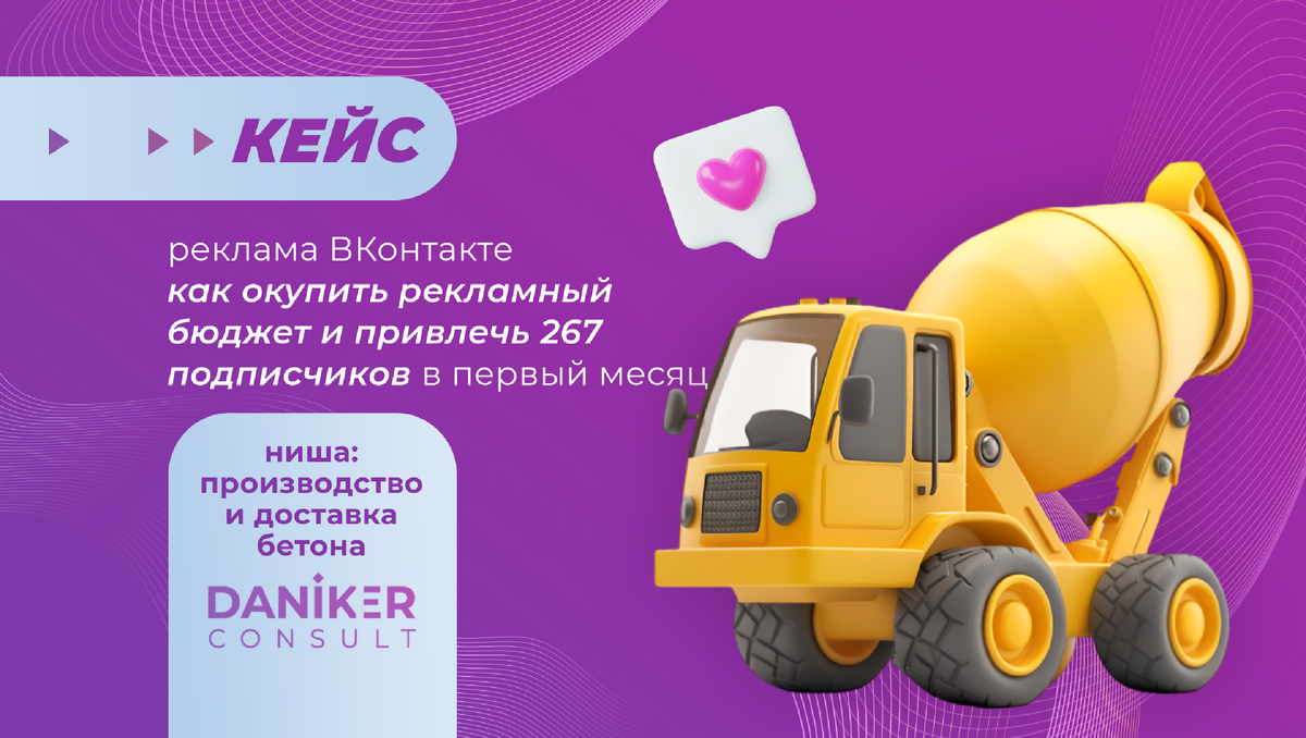 Кейс реклама ВКонтакте, ниша - производство и доставка бетона. Как привлечь 267 подписчиков и окупить рекламный бюджет в первый месяц.