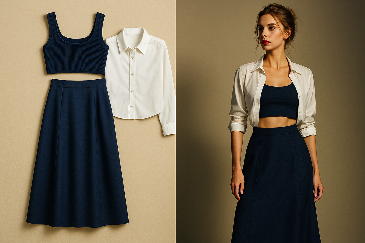 Совет для фигуры: Выбирайте модели с вертикальным рисунком ткани или асимметричным кроем — они стройнят и вытягивают силуэт.