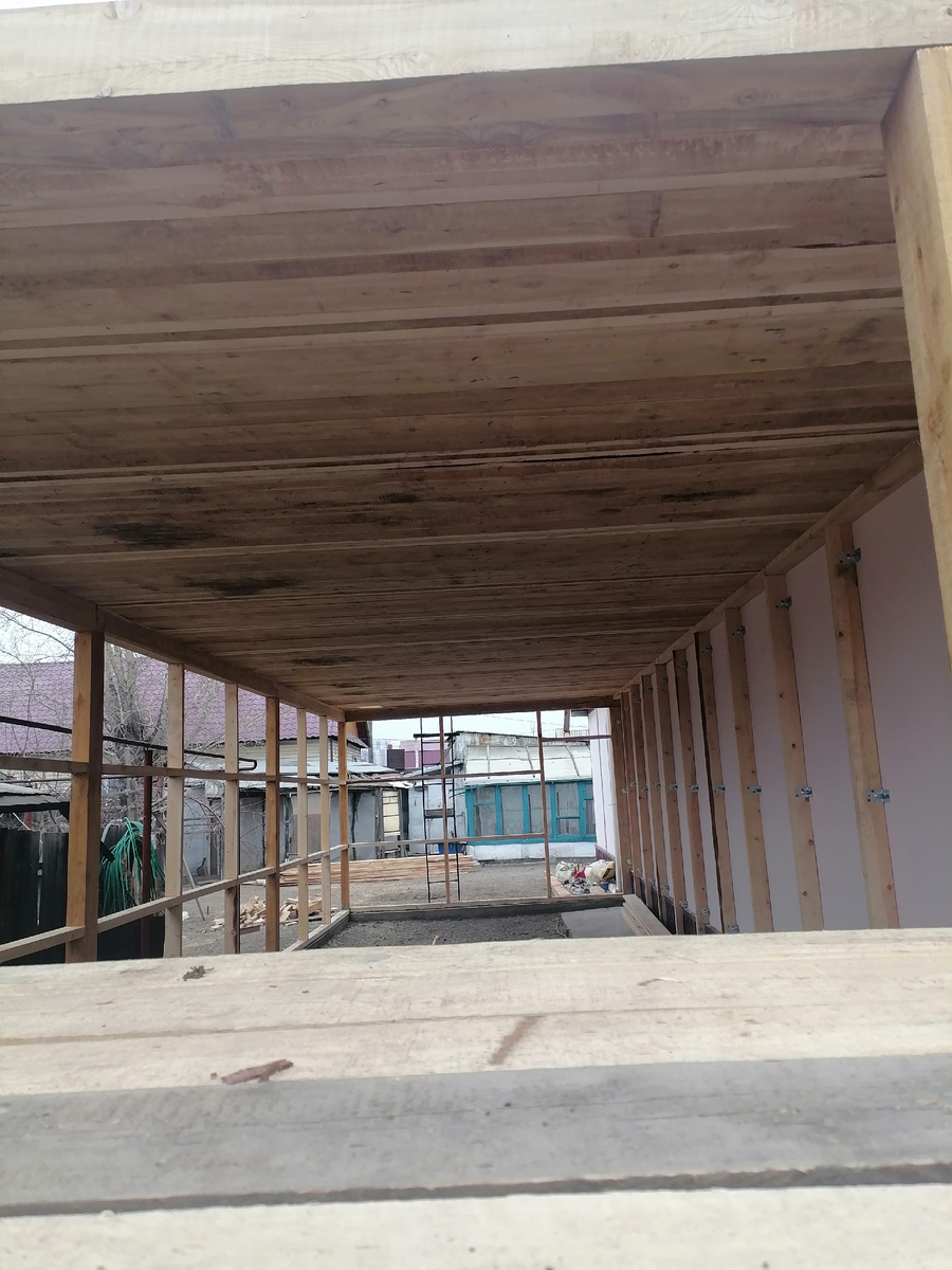 Здравствуйте дорогие друзья и гости моего блога!✌️ Друзья как и обещал, что буду публиковать все проделанные работы на очередном Калыме) Напомню что в прошлом Калыме мы из бригады 4-х человек делали гараж из Автоклавного газобетона размером 8х4м. Вот все статьи о работе где делали гараж из Автоклавного газобетона: Напомню что построили мы его за 4,5 дня. И сделали потолок и кровельные работы с утеплением опилками. А вот наш новый калым, Строительство Каркасного гаража) А сейчас напишу о том что мы сделали за 3-й день работы на Каркасном гараже. Так что поехали...) 1. Как приехали на работу так сразу доделали перекрытие гаража. Напомню что во второй день нам не хватило одного щита для перекрытия. 2. Начали крепить пароизоляционный материал, который продается в рулонах шириной по 1,5м. И площадь покрытия с одного рулона 70м2. Крепили этот материал с помощью строительного степлера. 3. Ещё не завершили покрытия всего потолка с поверхности пароизоляционным материалом, как начали сразу засып
