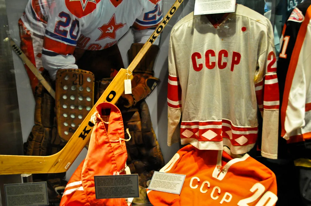 В 1924 году на Олимпийских играх канадская сборная играла в свитерах с кленовым листом, что позже стало её фирменным стилем. Проблемы экипировки: В 1970-х команды начали экспериментировать с цветами: Хоккейная форма прошла путь от простых