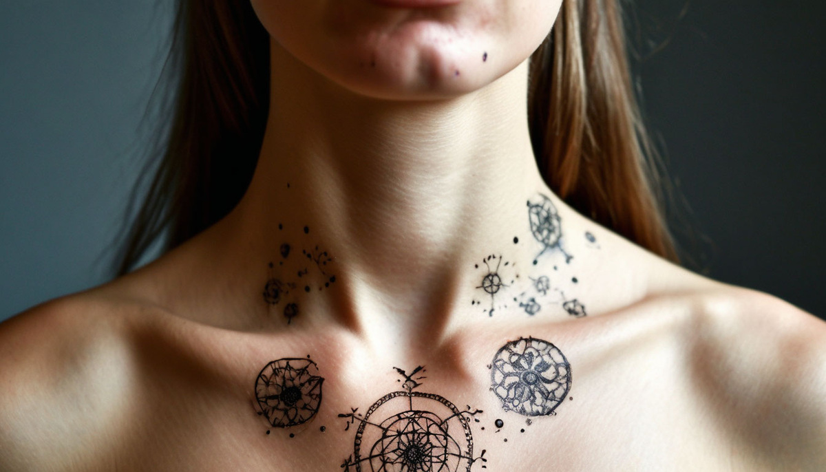 На шее – знак переменчивой судьбы, человек может часто менять направления в жизни.