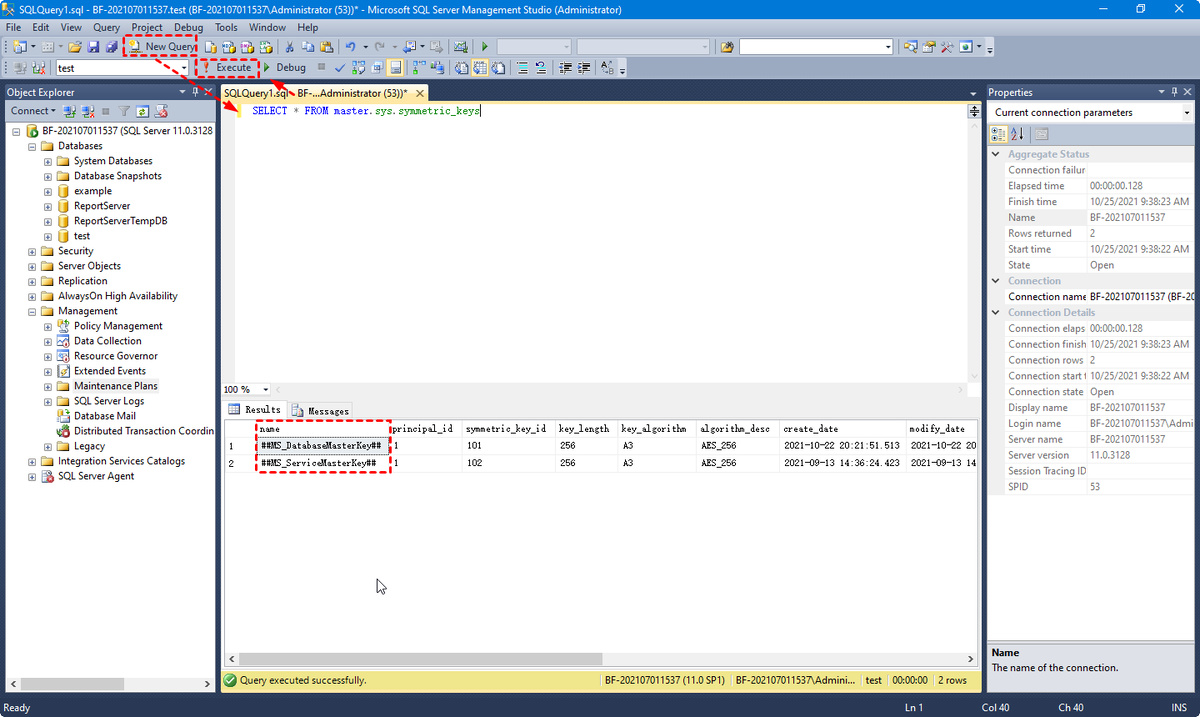 Нажмите Execute . В результатах вы можете проверить наличие DMK. Если его нет, то нам нужно его создать.