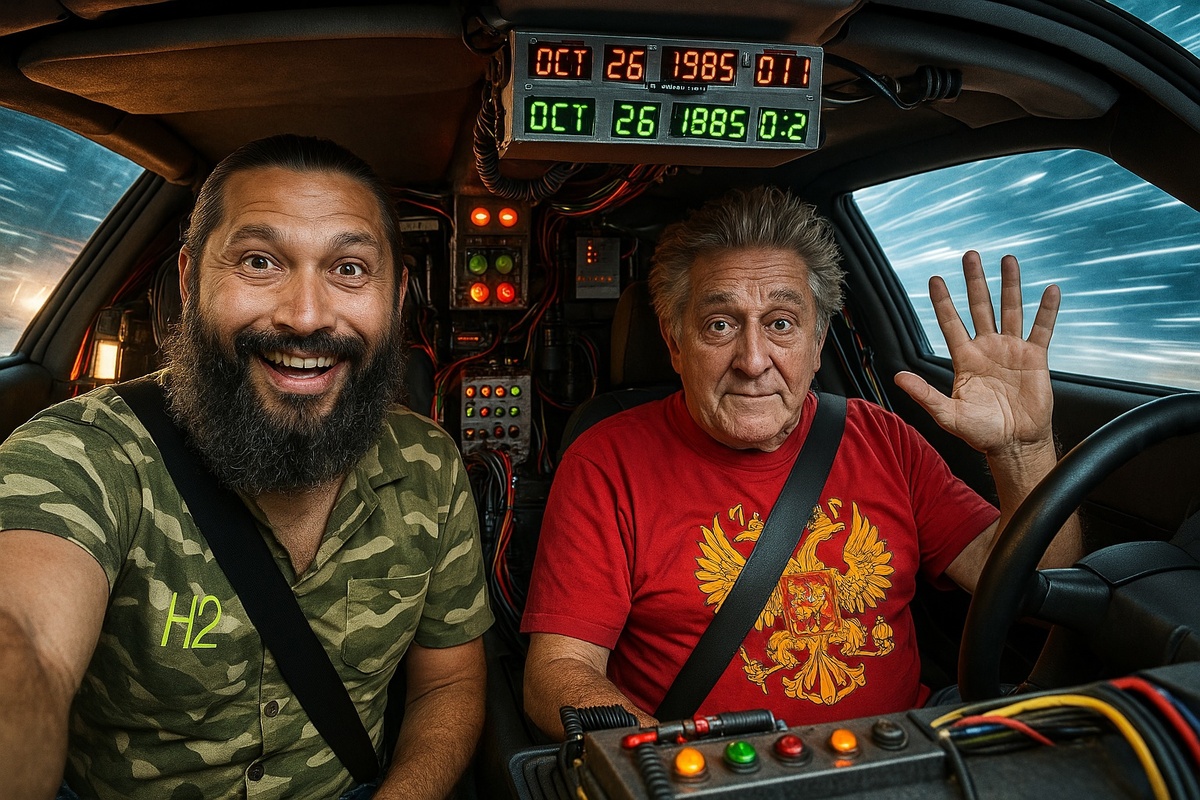 Когда машина времени обрела форму Сфирали, она перестала быть машиной. Она стала существо́м. Не предметом, а процессом — самосвивающимся, как коса, где каждый виток — событие, а каждый узел — выбор, сделанный и забытый. Именно такую Сфираль построил изобретатель — юный, но упорно идущий за зовом смысла. Он не один. За его спиной — фигура в красном, наставник, хранитель традиции, тот, кто умеет различить путеводный виток от петли забвения. Они сидят в ней, словно внутри собственного решения. Пространство изгибается. Машина, как и положено Сфирали, не движется — она свивается. Мир за окном то сгущается в момент, то растекается в десятилетия. Каждая петля — новая точка входа. Каждая антипетля — зеркало прошлого. — Мы не «едем», — говорит наставник, — мы свиваемся обратно. — Но как тогда попасть вперёд? — спрашивает автор. — Понять, куда свернул вначале. Только Сфираль не линейна, она себя же и питает. Она не уничтожает прошлое, а вплетает его в будущее. И в этот момент стрелка прибора — н
