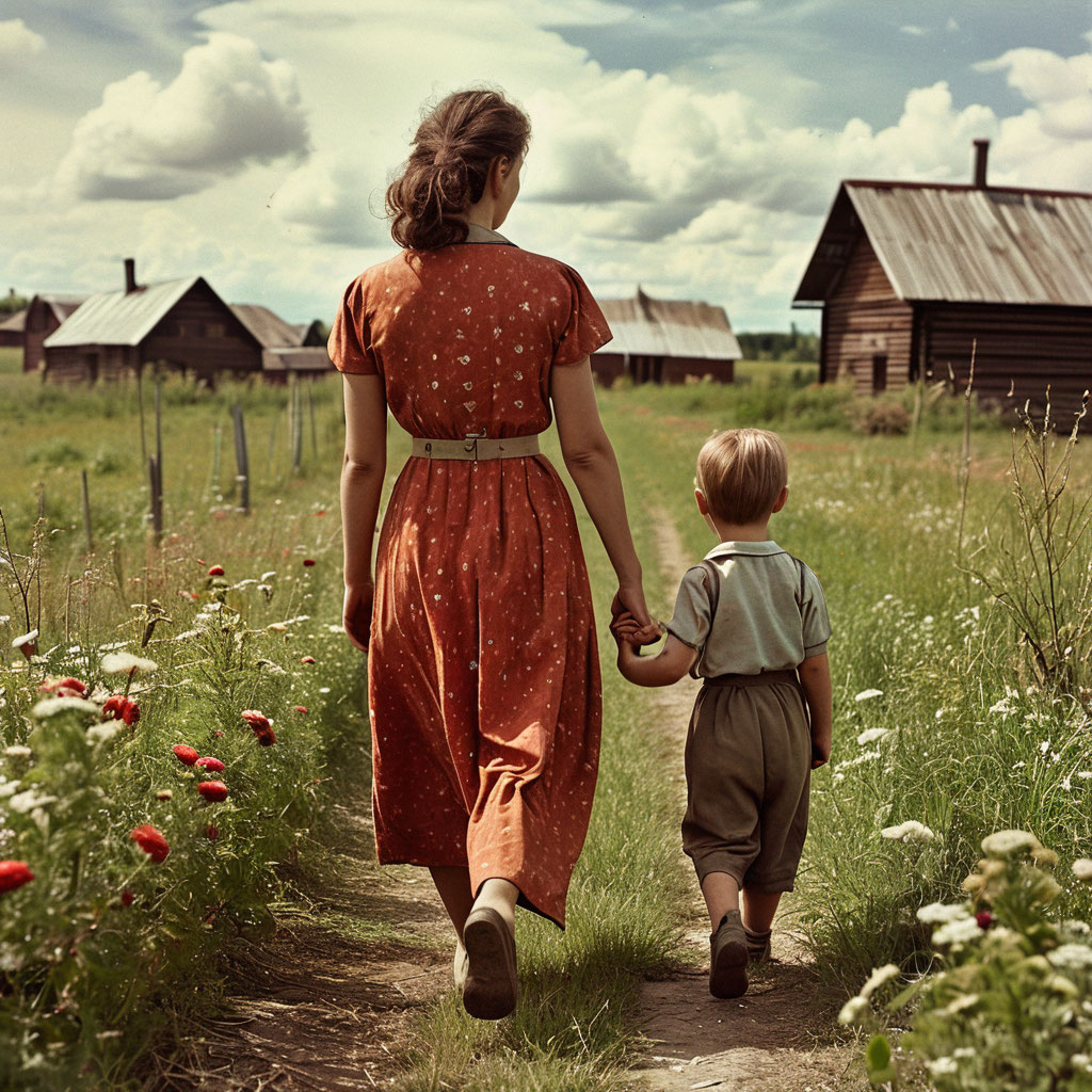 Они шли по единственной и пустой улице деревне, где оба выросли, и где каждый дом и каждое деревце было родным, и молчали. Павлик уснул на руках Шуры, положив голову матери на плечо. Так и не произнеся ни слова, расстались у Шуриной калитки.