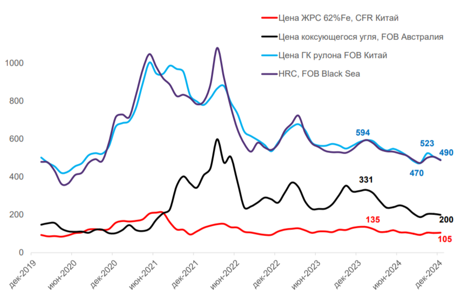 Высокая ключевая ставка делает своё карательное дело, только 47,8% застройщиков планирует ввод новых объектов в 2025 году. В первом квартале 2025 года ввод новых квадратных метров составил 8,1 м2, что на 24% меньше прошлого года. Как вы понимаете статистика по стройке стагнационная. Застройщики закладывают снижение спроса в связи с закрытием и ужесточением льготных ипотечных программ и высокой ключевой ставкой. Возможно такой небольшой дефицит обеспечит застройщикам более стабильную цену за м2. В этой ситуации мне не так интересны акции застройщиков, как акции металлургов. Основная доля выручки металлургов приходится на строительство. На цену продукции металлургов влияет не только сбавление темпов строительства наших застройщиков, но и продолжающийся строительный кризис в Китае. Из презентации компании Северсталь: Чёрная металлургия цикличный бизнес и мы безусловно идём в низ цикла. Перспектива отрицательного роста в 2025 году нарисовалась перед всеми черными металлургами). Посмотр