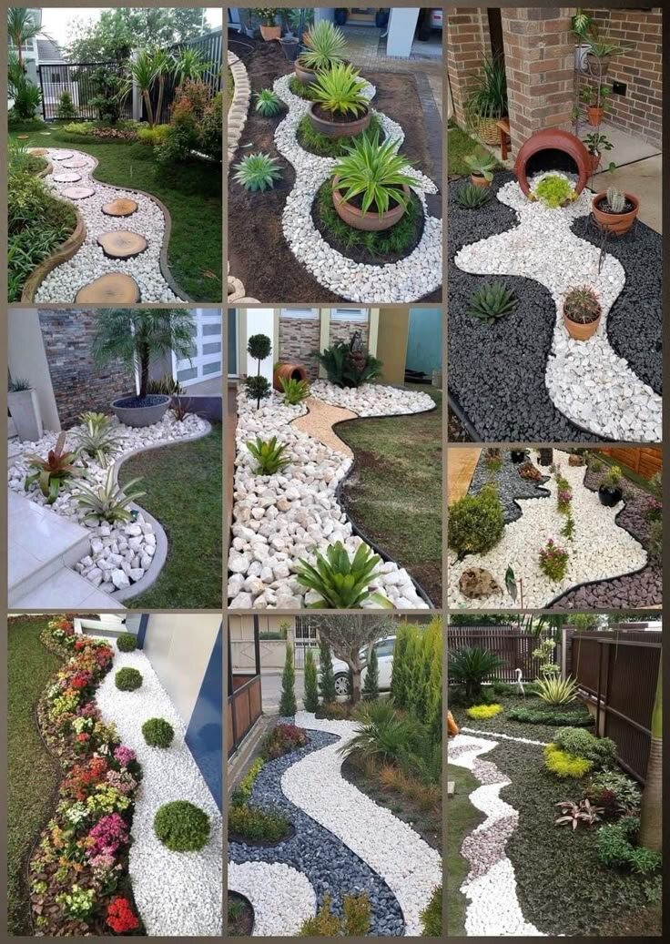 Интересное оформление клумб и дорожек с помощью крупной и мелкой гальки. Идеи для вдохновения.