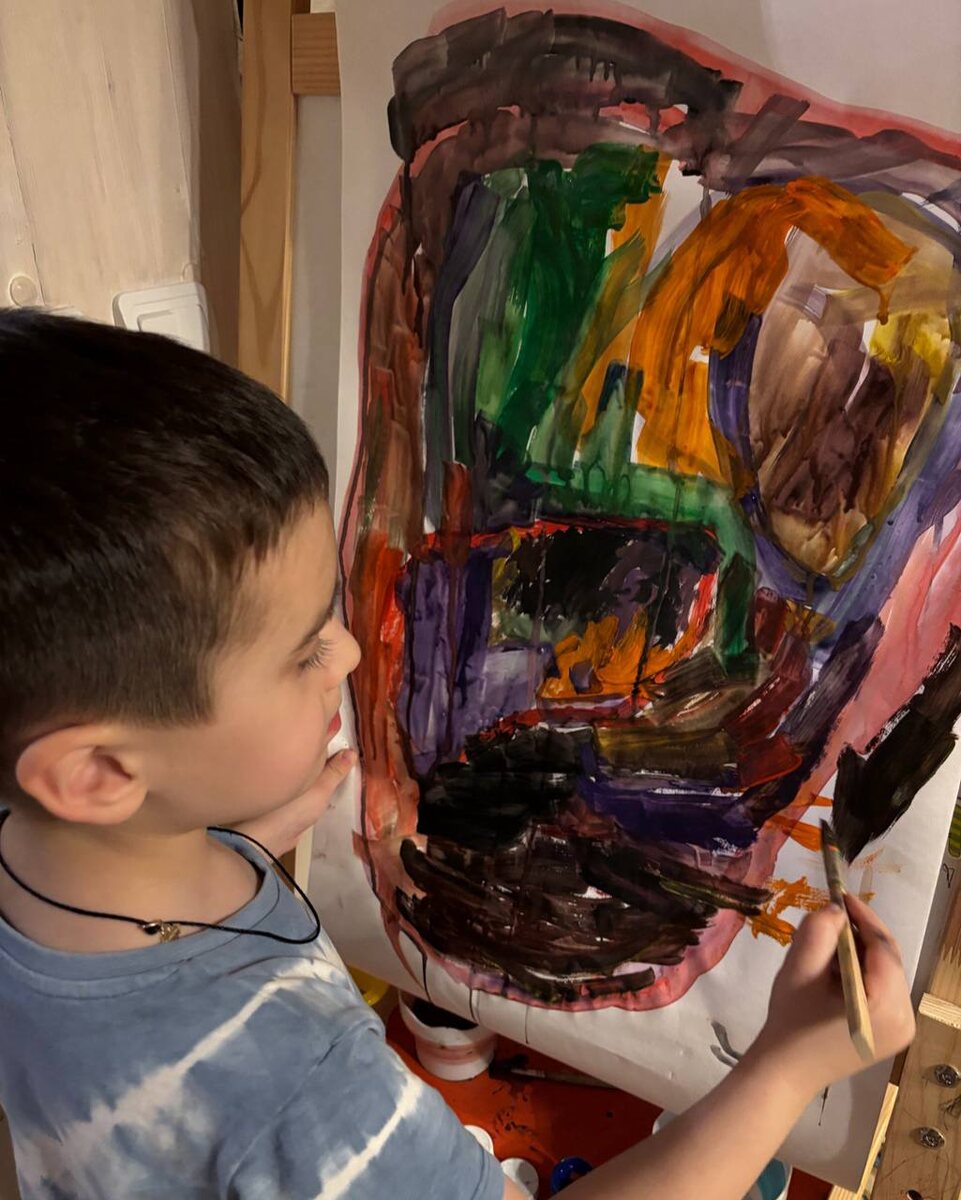 Такое вот искусство!🎨 💫Настолько понравилось рисовать, что теперь картины только в таких масштабах. ✨Игра с цветом и абстракция. ✨Разные мазки и способы нанесения красок ✨ Использование разных кисточек У Сознательного труженика (3-6), конечно, рисование переходит на новый уровень, в отличие от Бессознательного творца (0-3). ⭐️Больше внимания к деталям. ⭐️Вместо хаотичного рисунка рождается ассоциативный. Проявляются реальные предметы. В ассоциативном рисунке ребенок вплотную приближается к изобразительному периоду в творчестве. Предметный рисунок появляется чуть позже. 🖇Безусловно, предметы для занятия творчеством тоже должны быть в доступе у ребенка, ведь быстрый порыв (как у тоддлера) может быстро затухнуть, если есть препятствие. ➡️Поэтому для малышей можно подготовить отдельные сеты для рисования, при этом детям постарше можно предложить карандаши и краски в доступ. ✍ Обычно мы не спрашиваем «Что ты нарисовал», а можем указать на использованные цвета или линии. Но в э