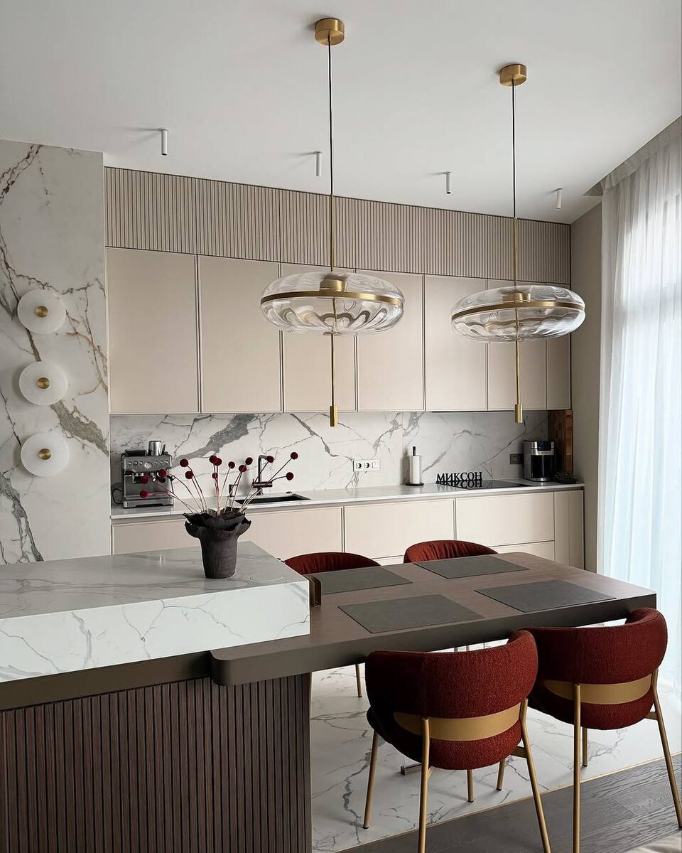 Перед вами кухня-гостиная 38,2 м2. Выполнена она в благородных, природных оттенках. Обратите внимание, как островная зона плавно переходит в обеденную. Необычным решением было сделать камин с живым огнем в зоне гостиной. Об этом расскажу в следующем видео 🎥 Дизайнер @dozorova.design Подробнее про кухню: ▪️Материал фасадов: МДФ Эмаль+ МДФ Шпон ▪️Цвет: NCS S 2005-Y50R + DUNA 1579 S ▪️Размеры: 1997 х 3587 мм ▪️Высота: 3068 мм Фурнитура Blum Доп. Компл.: ▪️Бутылочница LEVEL PRO, выдвижной фасад 150 мм, антрацит SIGE ▪️SINGLE M Ведро с ручками, пластик, объем 15л, H=310мм, цвет серый ▪️Сушка Ellite 2-уровневая в базу 900/16 ▪️Лоток для столовых приборов Cuisio Pro, на ширину 900 мм Стоимость на момент заказа: 1 078 915 рубля. Менеджер: Хуторкова Ольга У нас в студиях выставлено множество образцов кухонь с разными системами. Приезжайте посмотреть👀 Но не забудьте записаться ☺️ Наши адреса в Москве: 📍Дмитровское шоссе 71В, БЦ 7ONE, ежедневно с 10 до 20 ☎️ 8 (926) 922-55-02 📍Своб