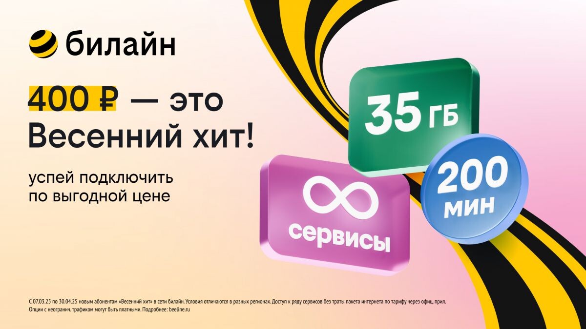 билайн запустил тариф «Весенний хит» для новых клиентов. Он соединил в себе ключевые аспекты при выборе оператора: наполнение пакета — оптимальное количество минут и интернета, безлимит на популярные сервисы и выгоду.