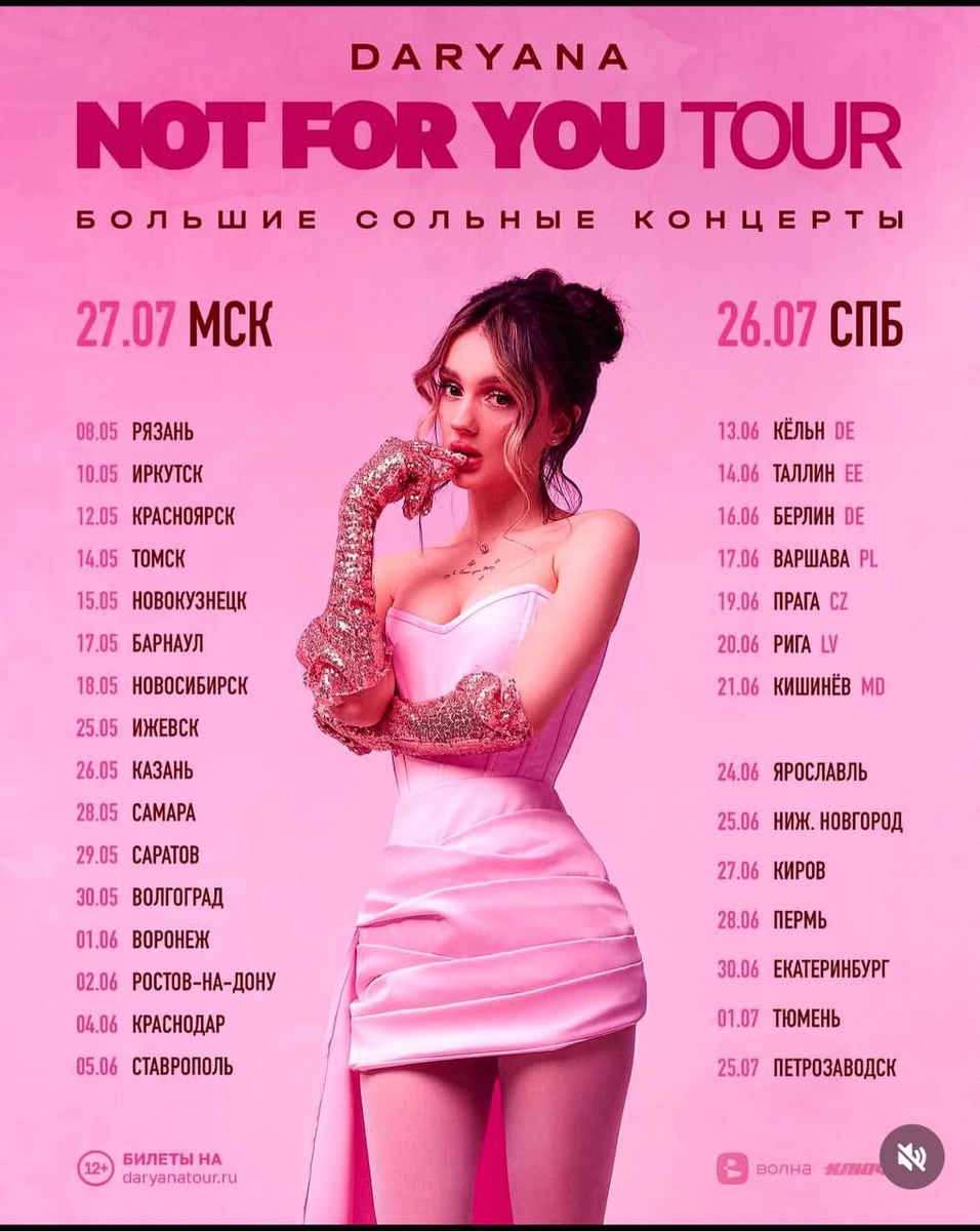 Скандальная блогерша из Нижневартовска едет в тур с большими концертами Дарьяна Галлавич, автор хита «Ты заставлял меня...» даст сольные концерты в 30 городах. Кроме российских городов, она выступит в Германии, Эстонии, Польше, Чехии, Латвии и Молдове. В своих соцсетях артистка поделилась, что готовит большое шоу для фанатов. Концертов в Югре не будет, а в соседней Тюмени стоимость за билет от 1600 до 5000 рублей. Возрастное ограничение +12. Есть тут фанаты Daryana? ❤️ - да 👍 - нет
