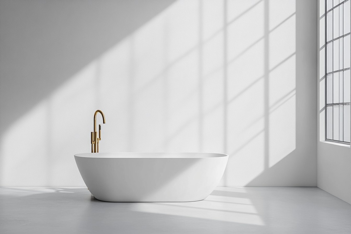 Создано на основе запроса: oval white ceramic style bathtup freestanding, , brass standing faucet, white background studio shoot, luxe, ultra modern luxury, minimalist style , empty room, studio shoot, product shoot --- Автоперевод: Овальный белый керамический стиль ванна. Как тебе это изображение? 🤔 https://dzen.ru/id/65c0c65c86e4f837c27b24d7 #ИИ #AI #нейросеть #midjourney #art