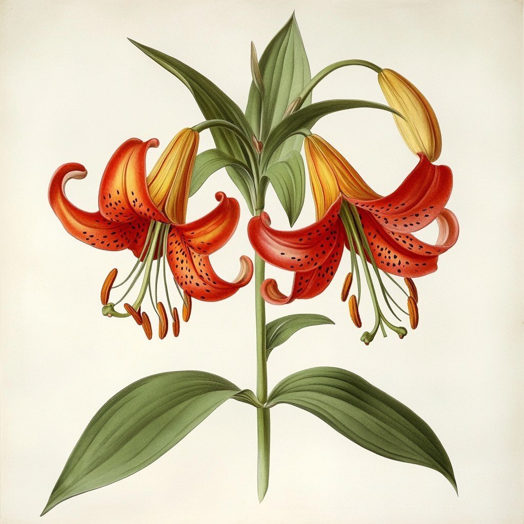Создано на основе запроса: botanical illustration similar to American Turk's cap lily, Lilium superbum, Georg Dionysius Ehret