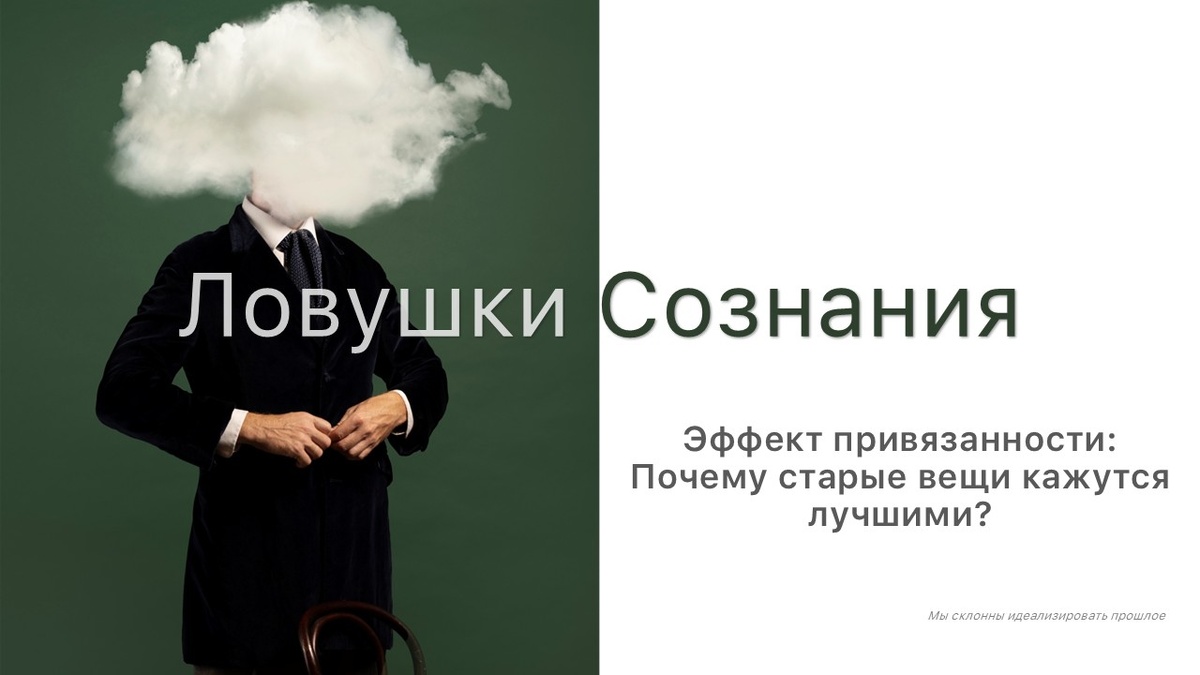 Привет, друзья! Сегодня на канале «Ловушки Сознания» разберём эффект привязанности — удивительное явление, которое объясняет, почему мы ценим что-то только потому, что оно наше или связано с нашим прошлым. Знакомо чувство, когда старая кружка кажется удобнее новой, а старый телефон вызывает ностальгию, хотя он уже давно устарел? Давайте разберёмся, почему так происходит. Представьте ситуацию: вы собираетесь выбросить старую футболку, которая уже выцвела и порвалась. Но каждый раз, когда вы берёте её в руки, вспоминаете, как она была с вами во время любимого путешествия. И, несмотря на её непрезентабельный вид, вы решаете оставить её. Это и есть эффект привязанности. Он заключается в том, что мы склонны переоценивать ценность вещей, людей или даже воспоминаний, которые связаны с нами лично. Чем больше времени мы проводим с чем-то, тем сильнее привязываемся к этому. Этот эффект был впервые описан в 1980 году экономистом Ричардом Талером. В своей статье "Toward a Positive Theory of Consum