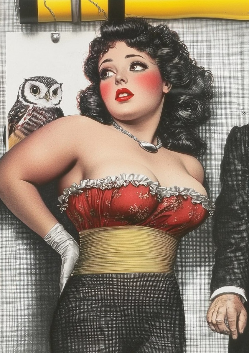 Создано на основе запроса: string optics in the style of Byam Shaw a vintage japanese poster of femme twiggy with large proportions and long hair, wearing stringtanga in fiber optic floral owls, tied to the wall by while holding her husband by his tuxedo, surrounded by many nightowls, looking at viewer, detailed drawing, 20s style, pencil sketch, high detail, full body shot, high resolution, very accurate details, art by ChrisWaikikiAI --- Автоперевод: Строка оптика в стиле Byam Shaw Старинный японский плакат женского тума Необычно выглядит? 🤔 https://dzen.ru/id/65c0c65c86e4f837c27b24d7 #ИИ #AI #нейросеть #midjourney #art