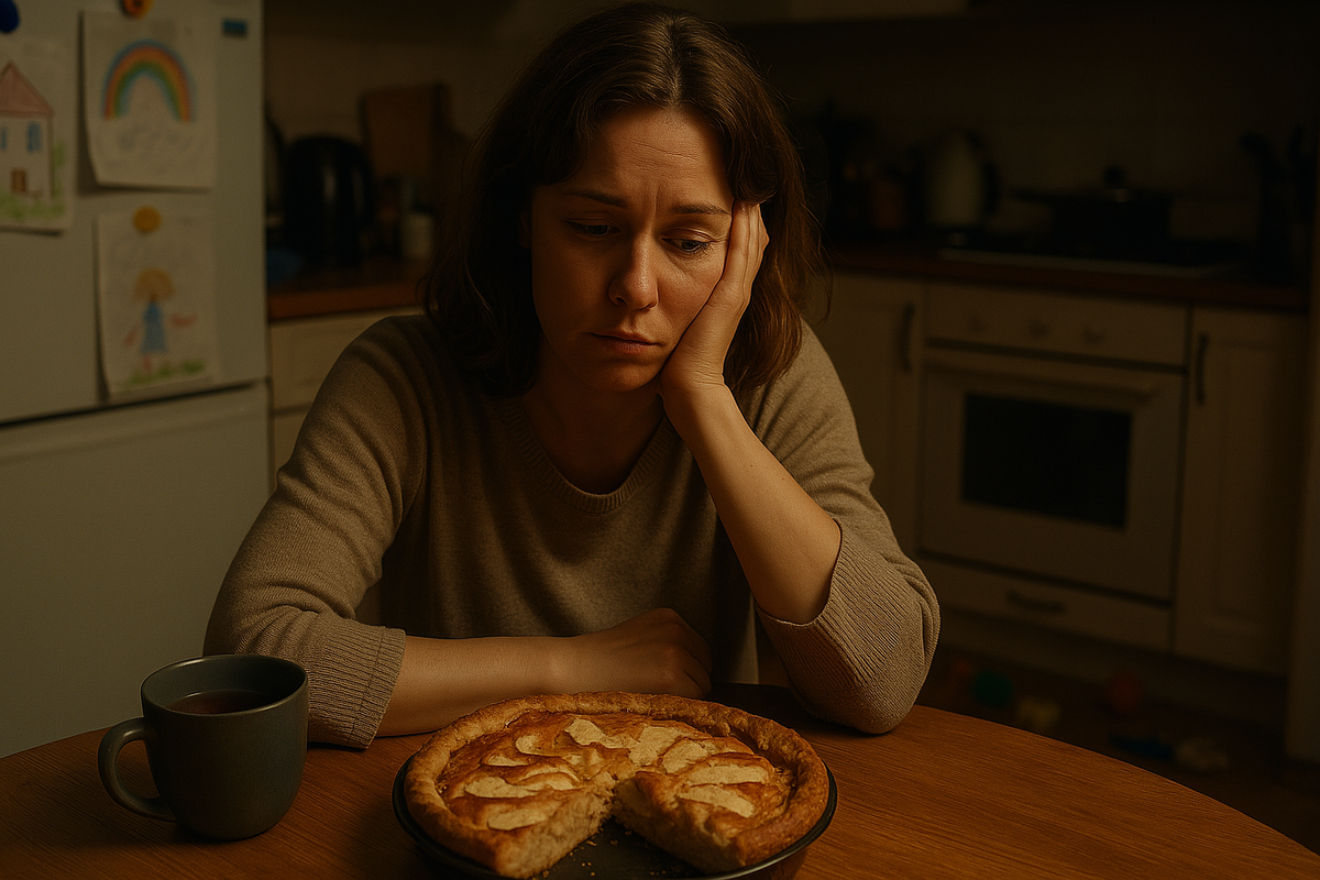Тесто замешивалось с трудом — то ли руки у меня не те, то ли мука и правда попалась какая-то не такая. Яблоки чистила в спешке, пару раз порезав пальцы, а корица рассыпалась по всей столешнице. Мама звонила каждые полчаса, проверяя: "Ты духовку разогрела? А тесто не липнет?" Я отвечала сквозь зубы, стараясь не сорваться. К вечеру, когда дети наконец угомонились, а я поставила пирог в духовку, кухня выглядела как после урагана: повсюду мука, кожура от яблок, а я сама — в липком фартуке, с растрепанными волосами.