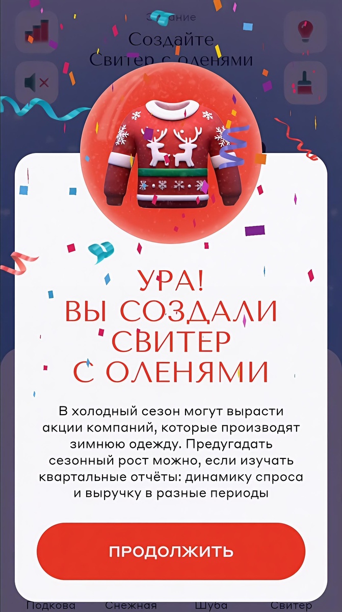 КАК СОЗДАТЬ СВИТЕР С ОЛЕНЯМИ • 22 элемента кость + кость = рога холод + шерсть = свитер металл + кость = подкова жизнь + подкова = лошадь лошадь + рога = олень олень + свитер = свитер с оленями _ • Дополнительные Артефакты: _ • НОВОЕ: • лошадь + подкова = конюх • лошадь + металл = машина • холод + кость = холодец _ шерсть + шерсть = овца шерсть + свитер = шуба шуба + жизнь + моль шуба + шуба = снежная королева шерсть + жизнь = кот кот + жизнь = бастет металл + металл = металлика металл + жизнь = железный человек • Ответы на задание СВИТЕР С ОЛЕНЯМИ • Альфа Банк • Подпись: Альфа Ингуш