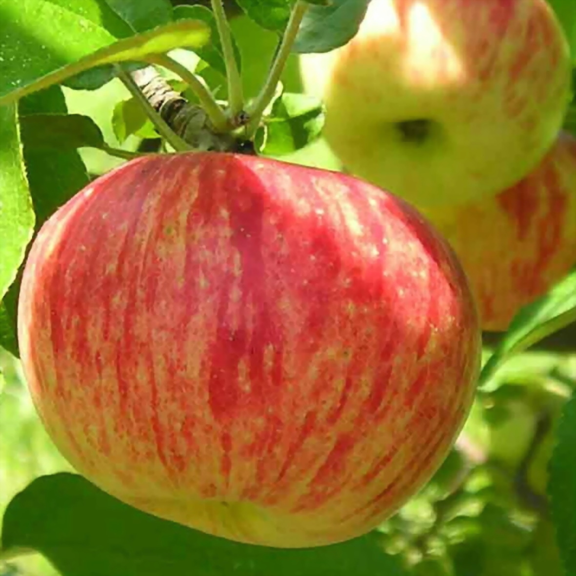 ``` Яблоня "Осеннее полосатое" – популярный осенний сорт, известный своими крупными, сочными плодами с отличным кисло-сладким вкусом.