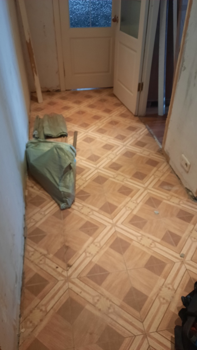 Укладку плитки буду производить в жилой квартире в коридоре и в зале. Сначала нужно демонтировать прежнее покрытие. Собираем мусор, тщательно подметаем или пылесосим, и покрываем пол грунтовкой. Прихожая и коридор ведущий на кухню имеет Т образную форму. Вымеряем 90 градусов от стены прихожей по центру коридора в сторону кухни, для того чтобы симметрично обрезать плитку по краям. Раскладку буду начинать от стены прихожей в сторону кухни. Приступаем к укладке плитке в зале. Раскладку в зале вымерять не буду, буду отталкиваться от коридорный плитки, которая подходит к дверному проему в зал. Плитку в больших помещения желательно выкладывать по максимуму одним ковром, чтобы перекрестия и швы не сбились. Плитка не идеальна, имеет нарушения в геометрии, поэтому плитку выкладываю рядами. Для подстраховки использую правило, чтобы соблюсти геометрию. После окончания укладки плитки затираем швы. Надеюсь, мой обзор оказался Вам полезным. Если Вы планируете ремонт ванных комнат ,санузлов, укладки