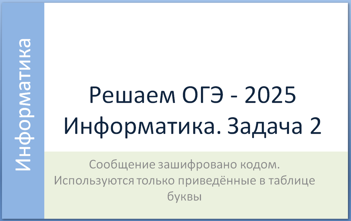 ОГЭ - 2025. Информатика. Решение задачи 2. Сообщение зашифровано кодом. Используются только приведённые в таблице буквы
