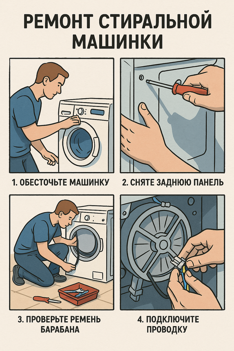 Ремонт стиральной машинки своими руками возможен, если вы уверены в своих силах. В сложных случаях лучше обратиться к специалисту, чтобы избежать дальнейших повреждений.