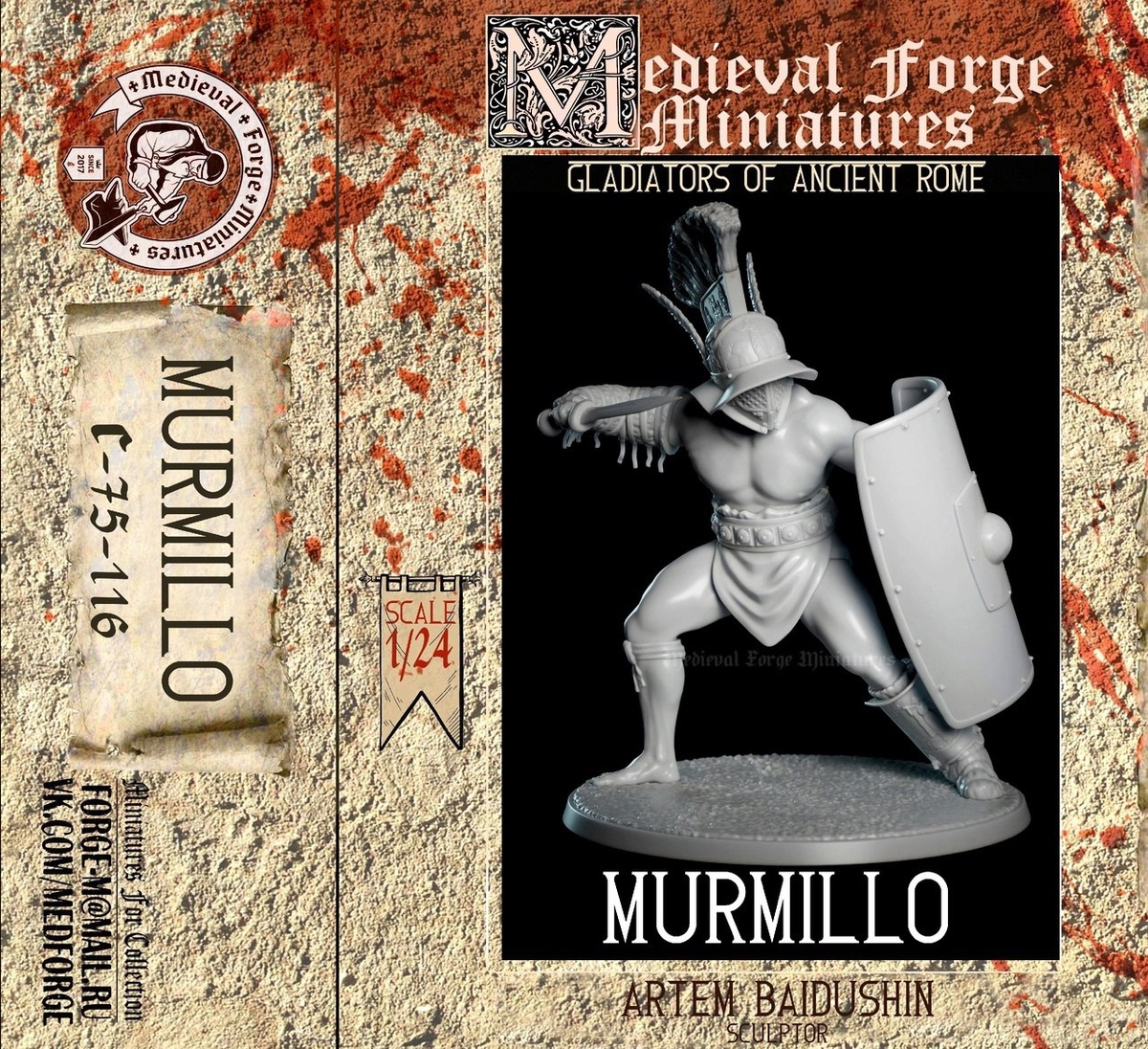 Medieval Forge Miniatures из Тамбова выпускает смоляную фигуру гладиатора мирмиллона в масштабе 1/24.