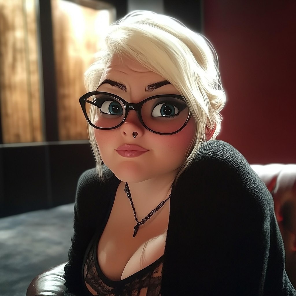 Создано на основе запроса: blond goth woman a mildly chubby with stretch piercing - PIXAR style