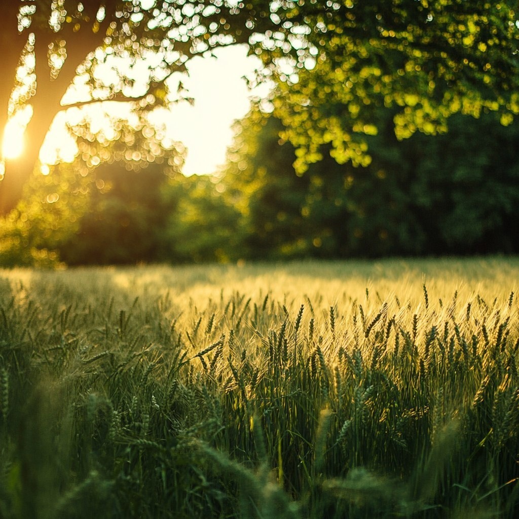 Создано на основе запроса: Nature is a green forest and a field with wheat